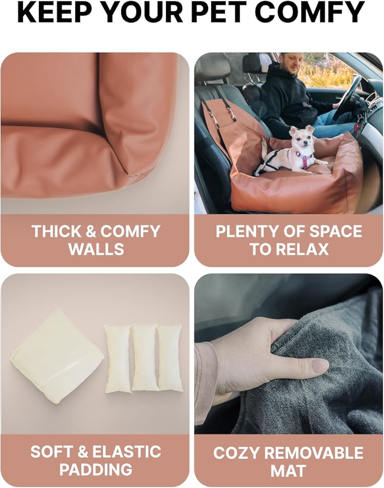 Your pet's comfiest supportProvide your dog with a safe and cozy place in the car using our portable car seat for travel. And of course, don't forget to attach a dog safety belt to the loop for additional security.
