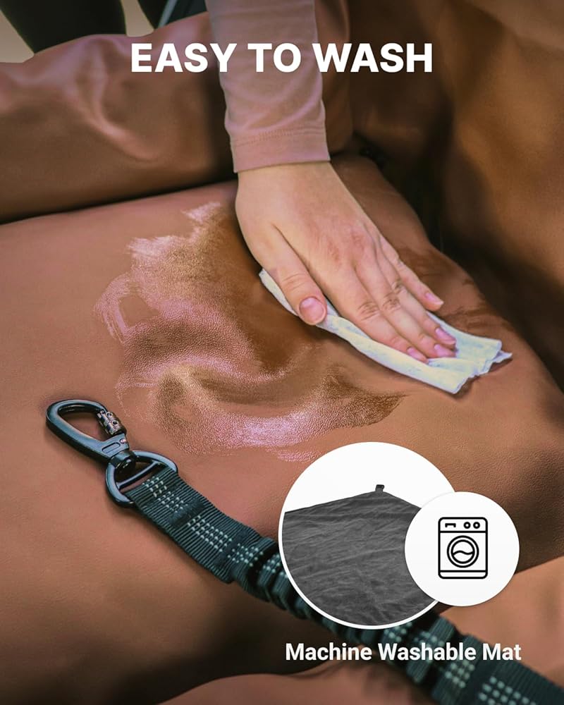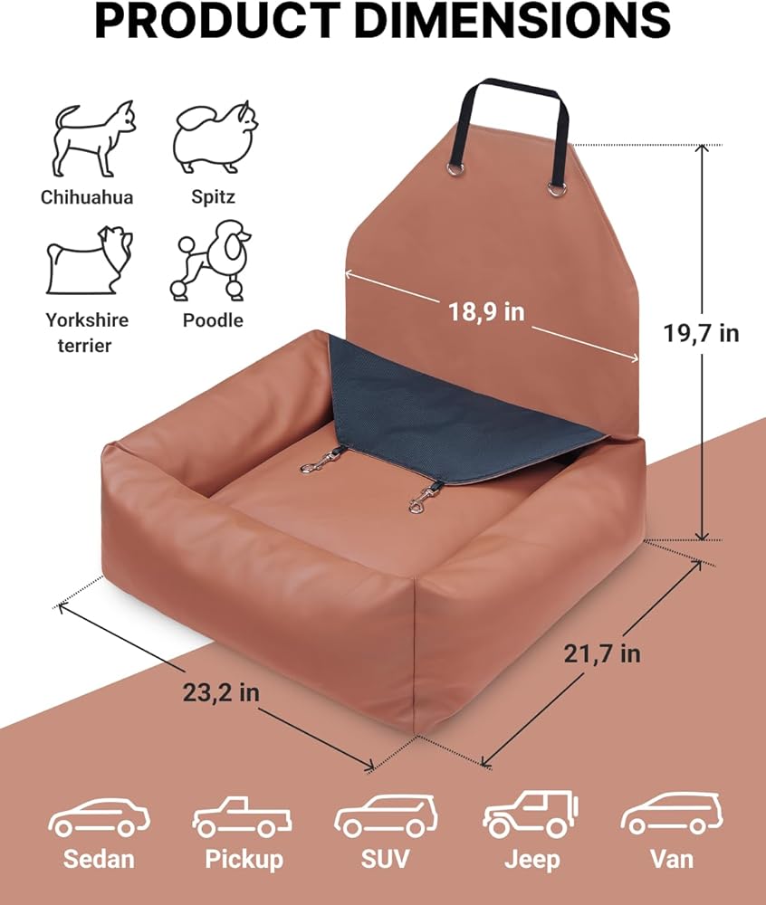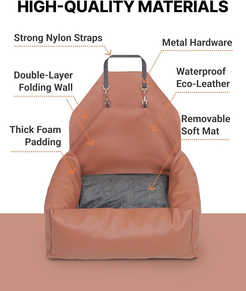Water-resistant to stay dryMade from smooth eco-leather, this travel dog seat is water-resistant, for your peace of mind – even if your puppy gets really nervous and relieves itself right in the middle of the road.