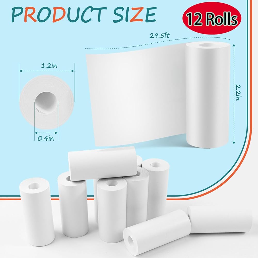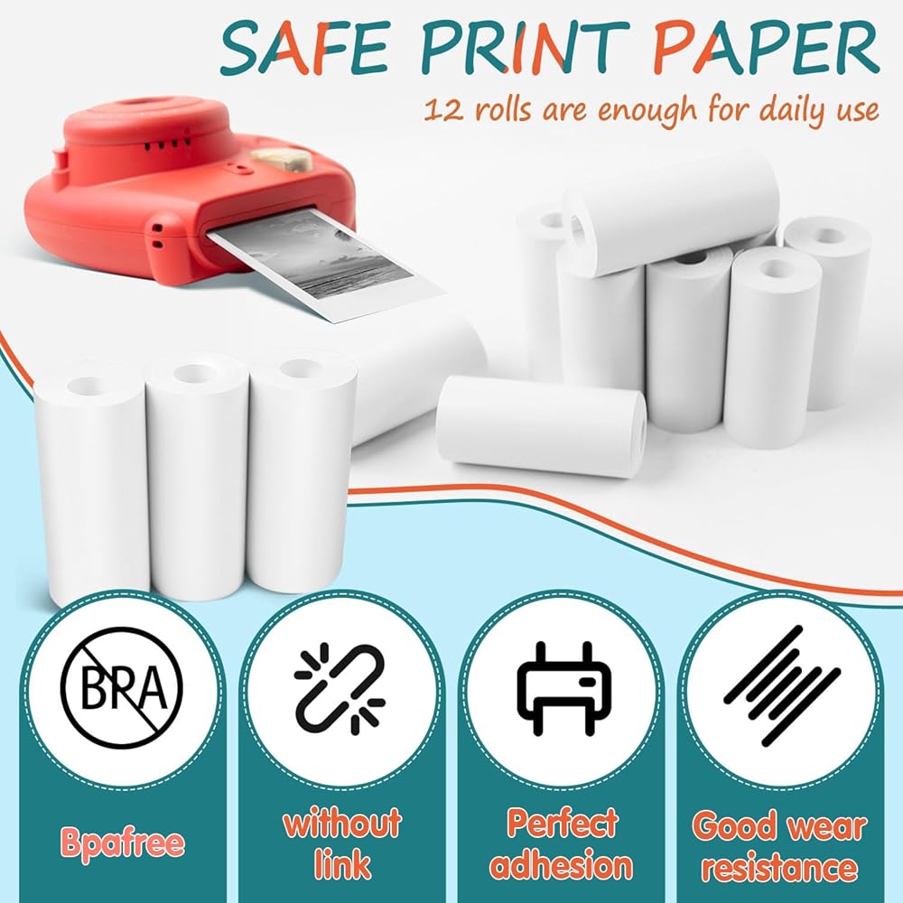 • PACKAGE INCLUDE: you will receive a set of 12 rolls Instant camera thermal paper white refill print thermal paper,This abundant quantity ensures that children can replace and use the paper for an extended period of time.