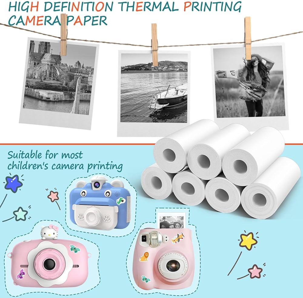 our camera paper is designed for the kids camera with printer, ensuring crisp prints. ideal for kids camera instant print thermal paper, each roll delivers vibrant colors.