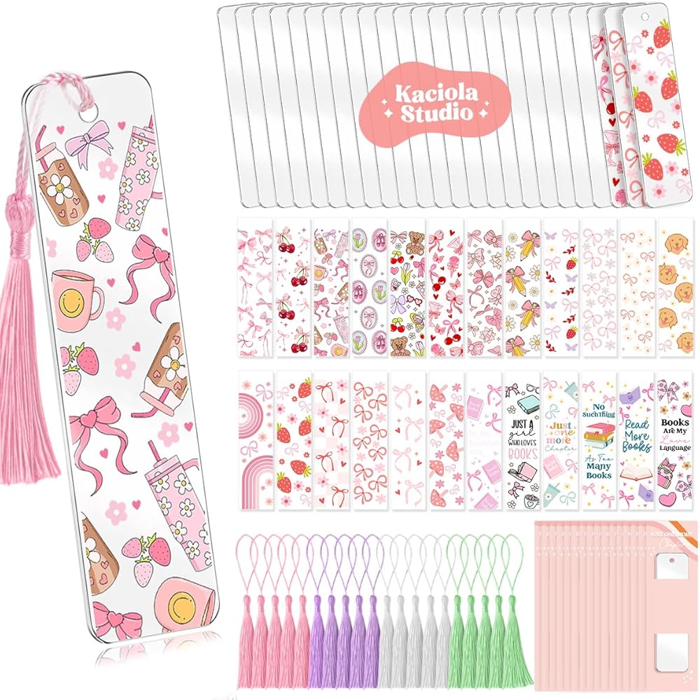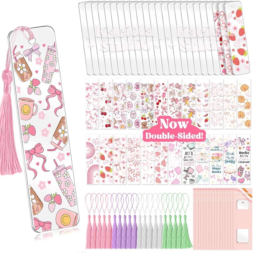 【120PCS DIY Bookmark Making Kit】: You will receive 24pcs blank bookmarks with 24pcs tassels,24pcs different patterns uv sticker about christmas themed+24 Bookmark Sleeves Holder+24 Packing Bags. The acrylic bookmark blanks measure 4.72 "x 1.18" (12cm x 3cm). Great for DIY crafts and blanks bookmarks making.