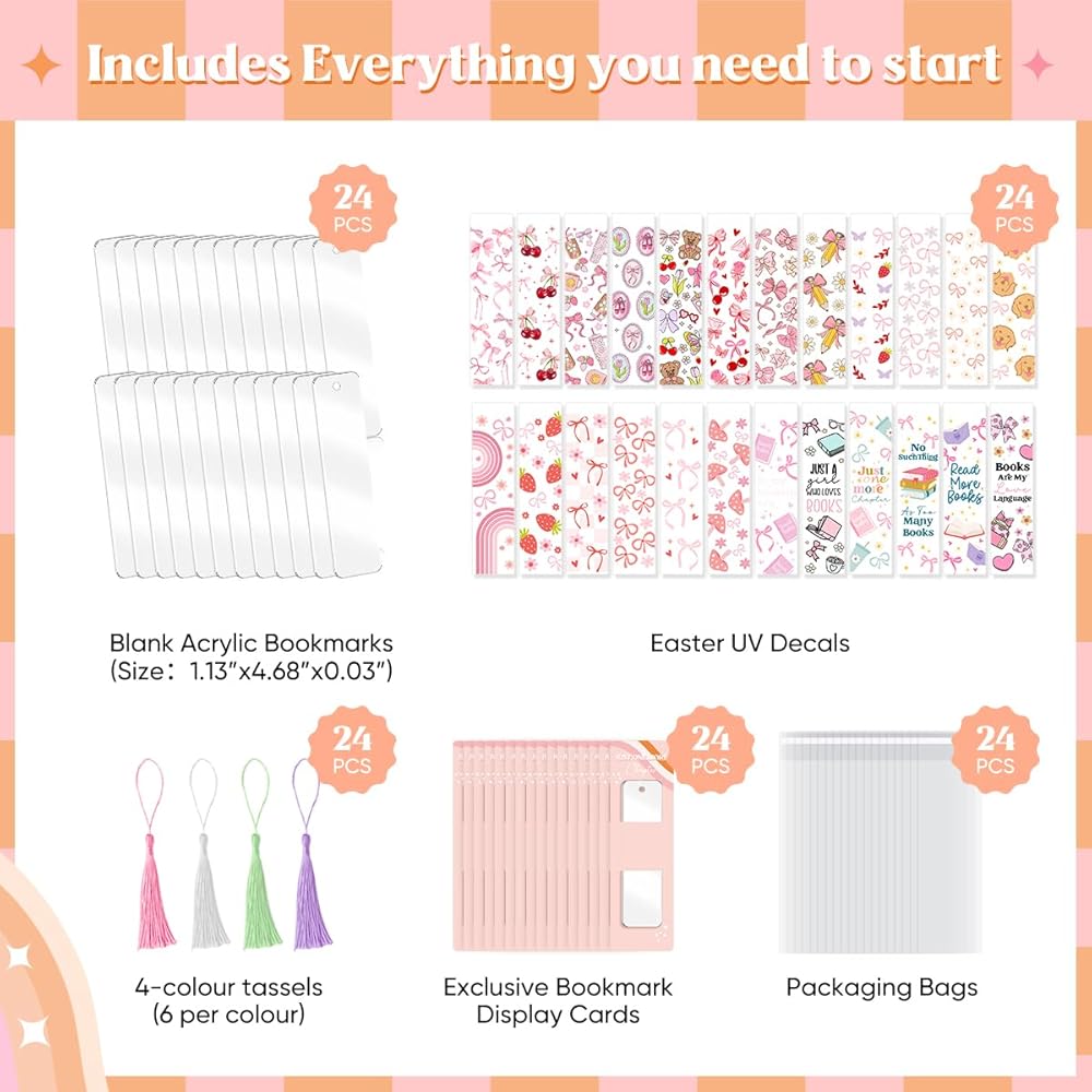 Double Sided Design: Our acrylic bookmarks are made of high quality acrylic with protective film attached on both sides, both sides are smooth after tearing off the film, you can stick our bookmarks uv stickers on the blank side of the bookmarks or you can DIY your own bookmark pattern, according to the instruction manual that we included, you can use them easily without worrying about any kind of mistakes.