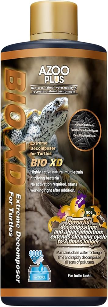 AZOOPLUS BIO XD Extreme Decomposer Nitrifying Bacteria for Freshwater and saltwater tanks, restores natural water quality & recreates natural environment. Highly active natural multi-strain nitrifying bacteria, no activation required. Starts working right after addition. Decomposes excrement and toxic substances, reduce frequency for cleaning turtle tanks.