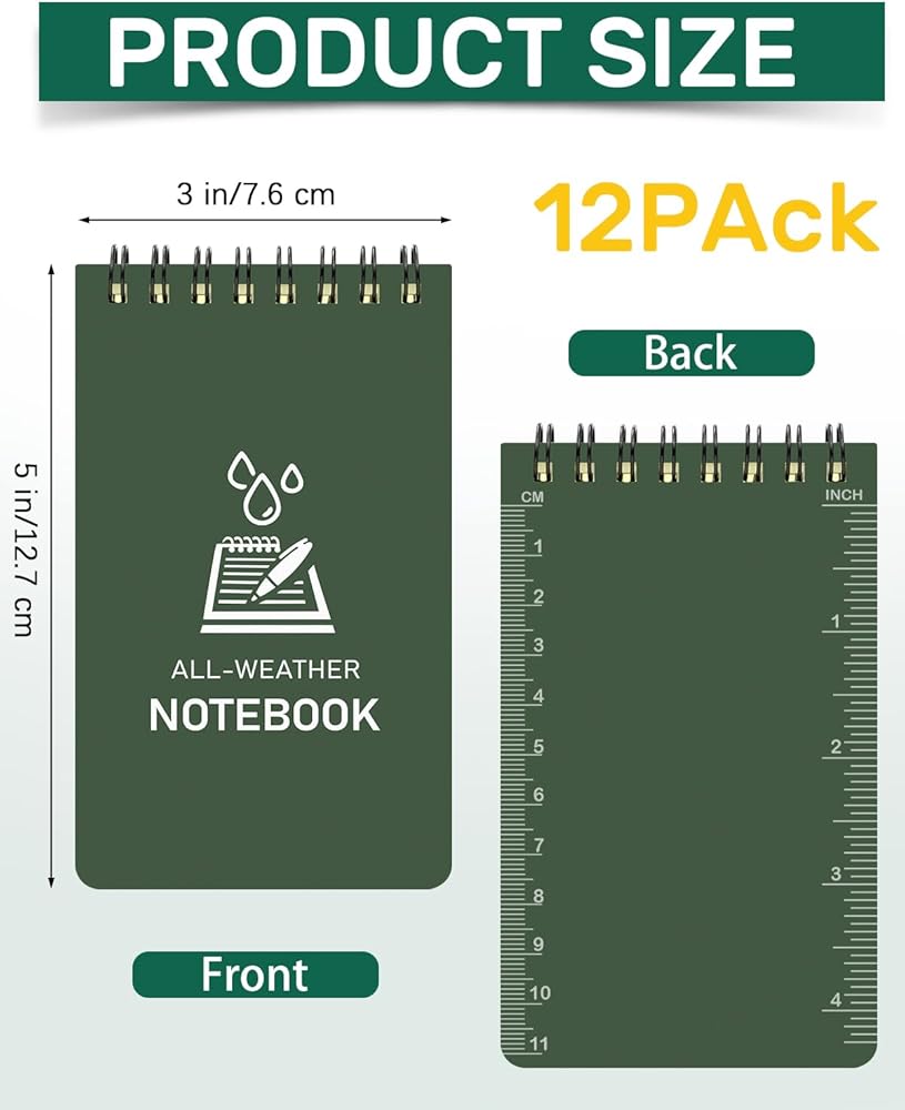 12 packs waterproof notebooks in 3 x 5 inches