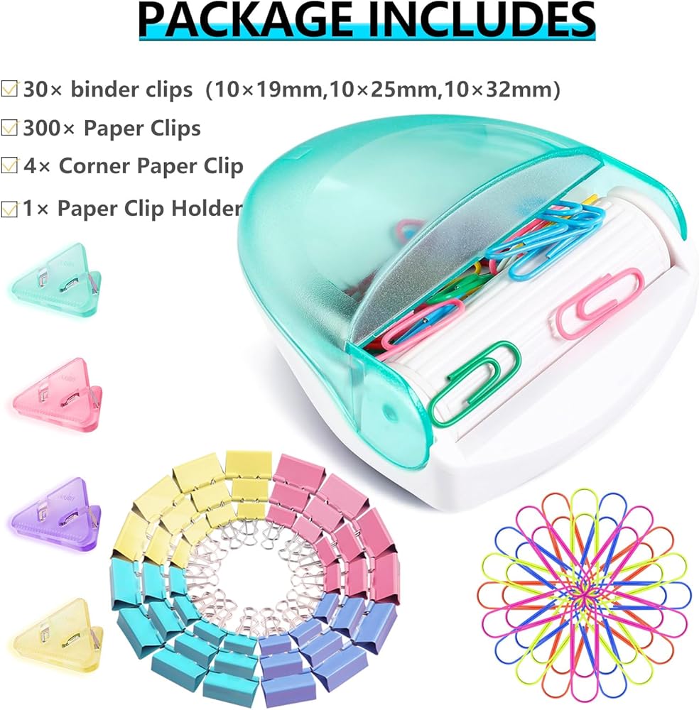 【Meet Office Desk Accessories Need】:300x Paper Clips,30x binder clips(10x 19 mm, 10x 25 mm, 10x 32 mm),4x Corner Paper Clip,and 1x Paper Clip Holder.