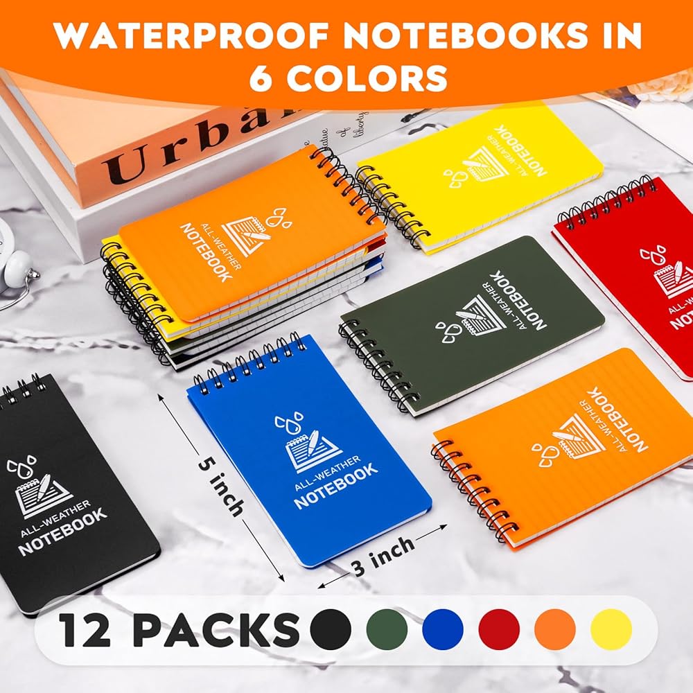 12 packs waterproof notebooks in 3 x 5 inches