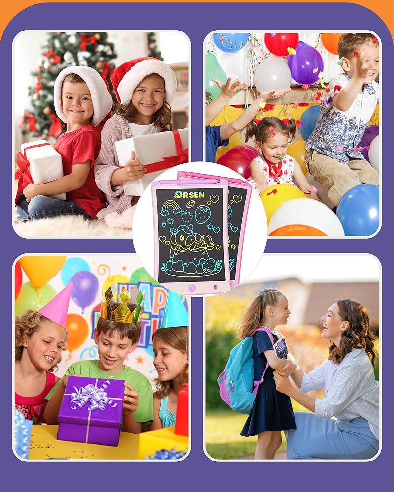 💯 هدايا للفتيات والأولاد - يعد الكمبيوتر اللوحي ORSEN LCD للكتابة للأطفال فكرة هدية مثالية للهالوين والكريسماس وعيد الشكر وعيد الفصح وأعياد الميلاد والعودة إلى المدرسة وأي مناسبة خاصة أخرى للأطفال من سن 3 إلى 8 سنوات. لوحة الكتابة متعددة الوظائف هذه ليست مجرد لوحة رسم، ولكنها أيضًا لوحة رسم للأطفال الصغار، ولوحة رسم، ولوحة كتابة، ولوحة رسم، وألعاب تعليمية.