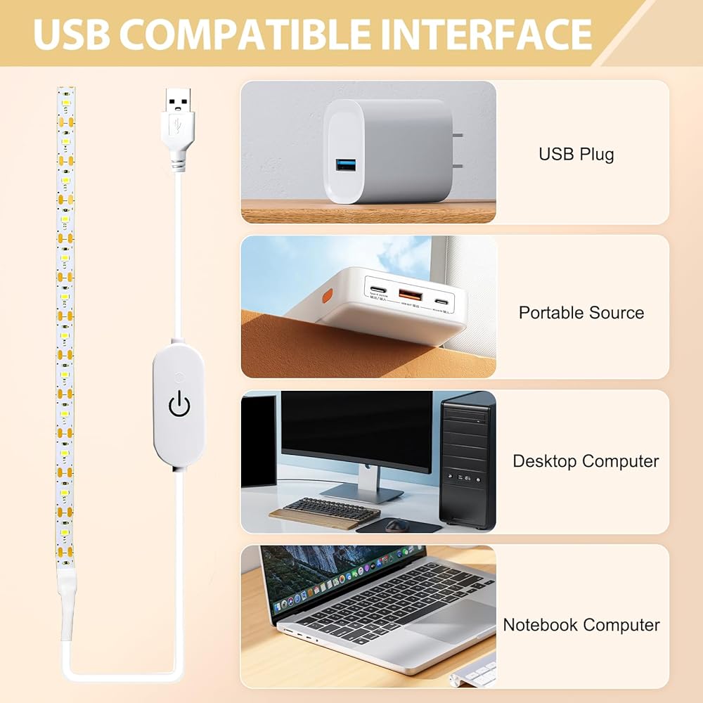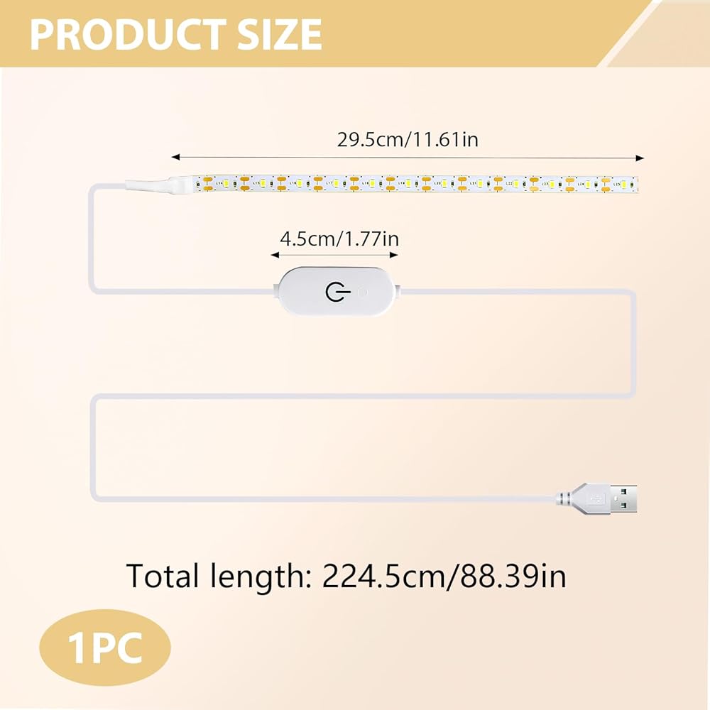 Introducing the USB Powered LED Sewing Machine Light Strip. This 11.8-inch white light strip is specifically designed to fit sewing machines, providing you with optimal lighting and visibility while working on your projects. With its USB power feature, this LED light strip can be conveniently powered through any USB port, making it compatible with various devices such as laptops, power banks, and wall adapters. The included 5.6-foot USB cable ensures flexibility in positioning the light strip according to your preference.Equipped with a touch dimmer, you can easily adjust the brightness of the light to suit your needs.