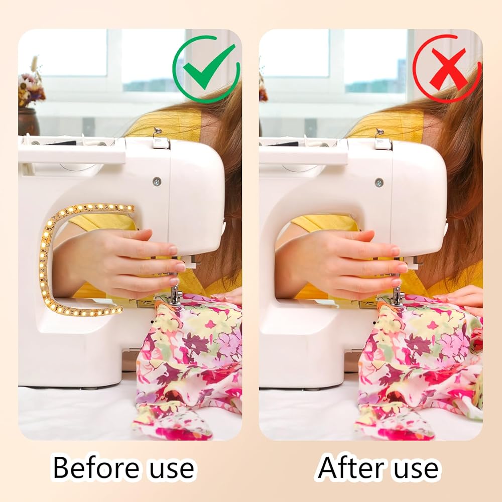 【Easy to Install】LED strip comes with double sided tape on the back, just keep the adhesive area clean to stick it to the back of your sewing machine, and you can cut it to the desired size for sewing machines using scissors.