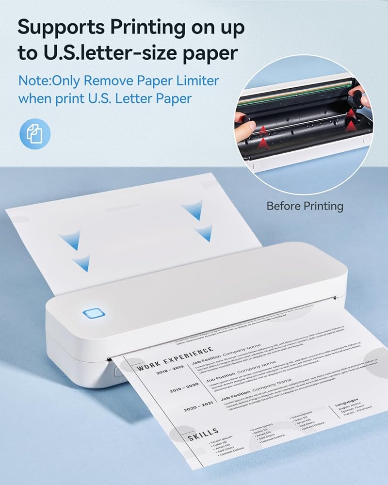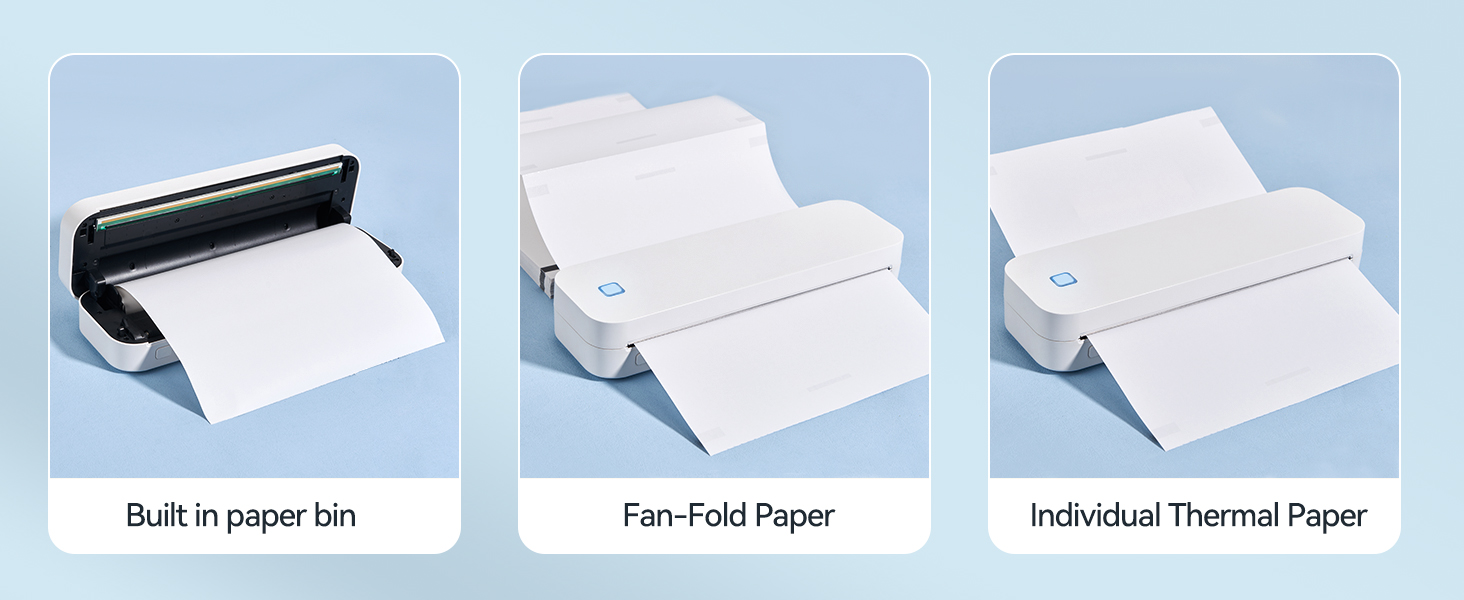 【توافق قوي】: 【يحتاج محدد الورق فقط إلى إزالته عند الطباعة على ورق الرسائل الأمريكية والورق القانوني 】تحتوي الطابعة المحمولة مقاس A4 على توقف قابل للتعديل بعرض محدد الورق مما يسمح لك بالتبديل بمرونة بين الورق الحراري مع عرض الطباعة 216 مم/210 مم، 176 مم/148 مم/107 مم/77 مم/57 مم (Legal/US Letter/A4/A5/4 بوصة/3 بوصة/2 بوصة)، ويدعم أيضًا الورق الملفوف والمطوي. كما أنه يدعم الورق الملفوف والمطوي لتلبية احتياجات الطباعة الخاصة بك في مجموعة متنوعة من المناسبات!
