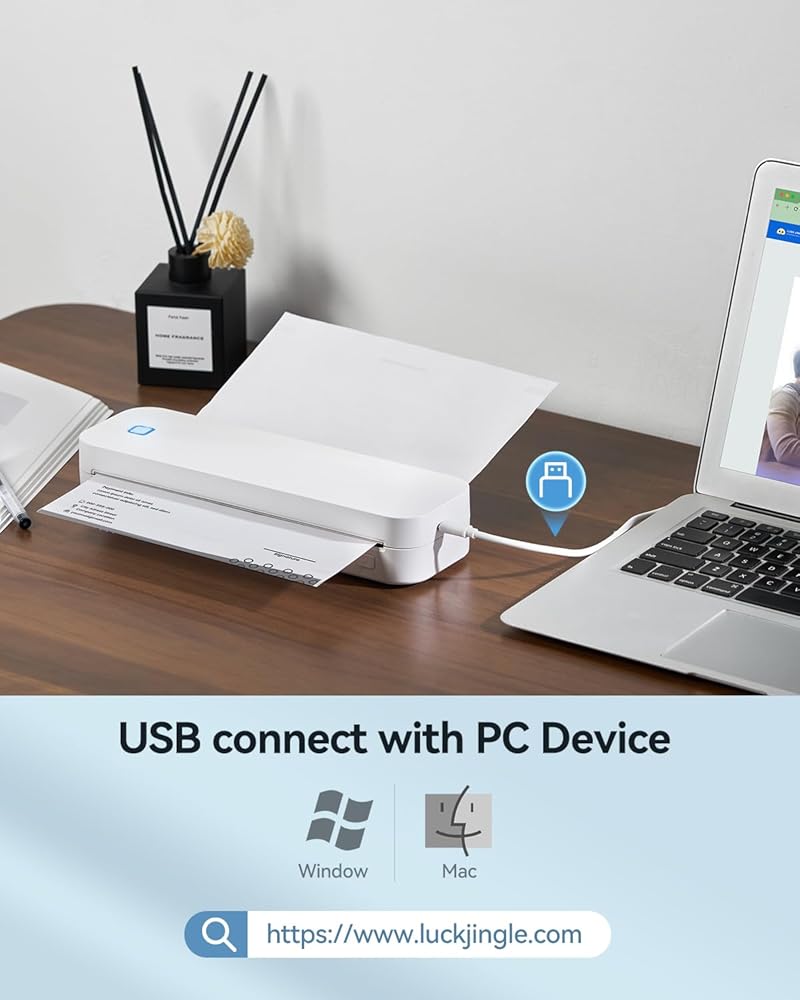 【إعدادات الطباعة BT وUSB】تدعم هذه الطابعة اللاسلكية المحمولة الاتصال اللاسلكي بالهواتف والأجهزة اللوحية التي تعمل بأنظمة تشغيل iOS وAndroid. وفي الوقت نفسه، يتوفر اتصال USB سلكي لأجهزة الكمبيوتر التي تعمل بنظامي التشغيل Windows وMac OS. يتم تضمين محول USB من النوع C. ملاحظة: 1) قم بتنزيل تطبيق "Luck Jingle" من متجر التطبيقات. 2) اضغط مع الاستمرار لمدة ثانيتين لفتح الجهاز، 3) قم بتشغيل بلوتوث هاتفك وافتح التطبيق، 4) أضف جهاز D80 في الزاوية اليمنى العليا من التطبيق لإنشاء اتصال Bluetooth. تحتاج إلى تنزيل برنامج التشغيل من موقع الويب مسبقًا لاستخدامه على جهاز الكمبيوتر. (يمكنك التحقق من عنوان URL لبرنامج التشغيل في دليل المنتج)