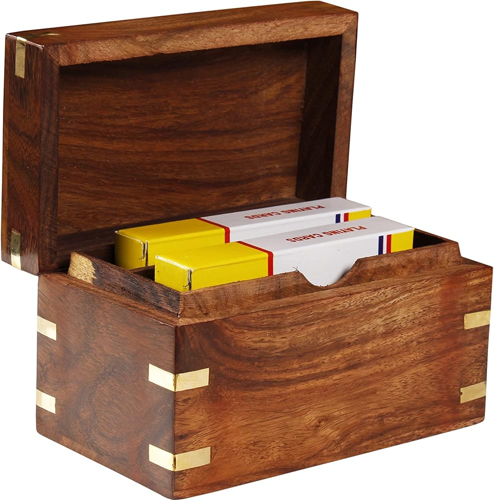 Wooden card box hold 2 packs of playing cards 12.5x7.5x7.5cm