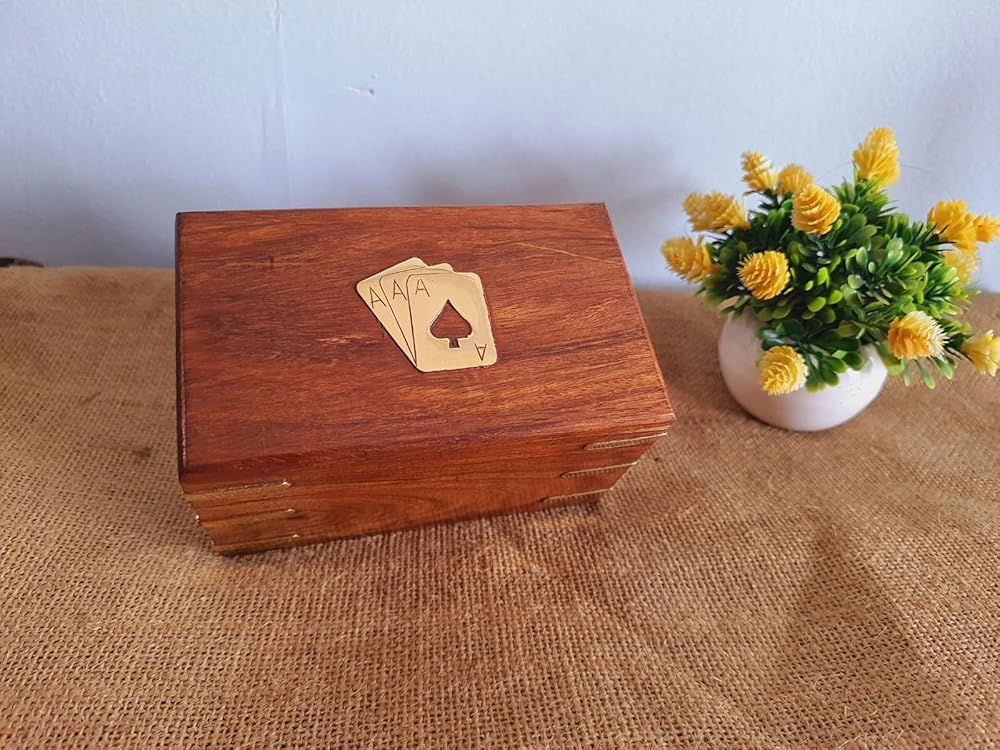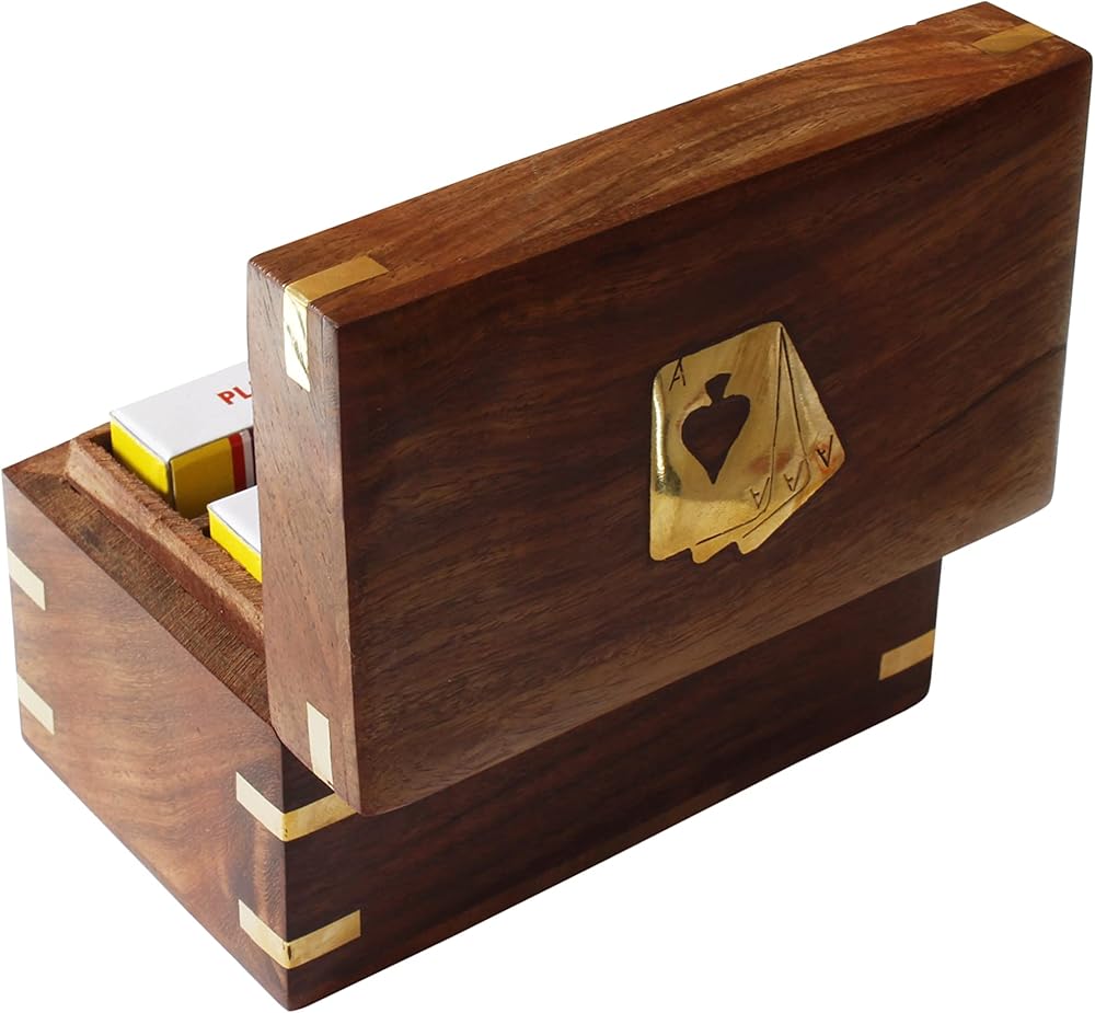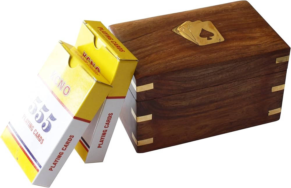 Twin Card Pack wooden playing card box | Two Packs of Cards Storage Holder With 2 Sets of Premium Quality Playing Cards Anniversary Housewarming Gifts Him Her