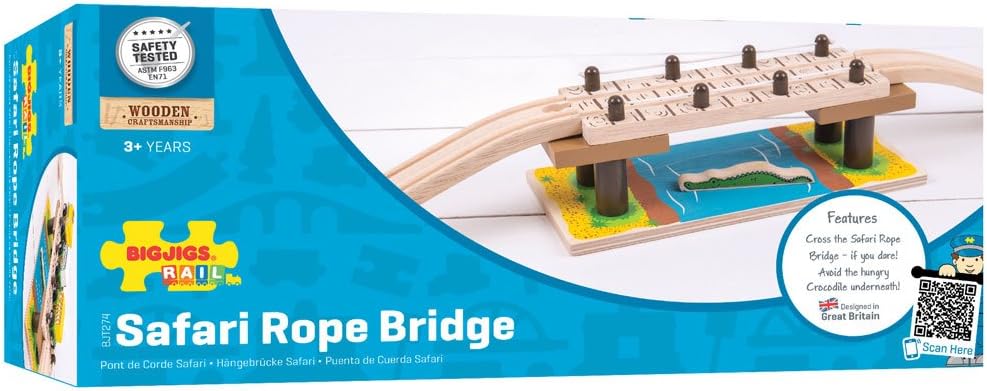 جسر Bigjigs Rail Safari Rope Bridge - العلامات التجارية الرئيسية الأخرى للسكك الحديدية الخشبية متوافقة