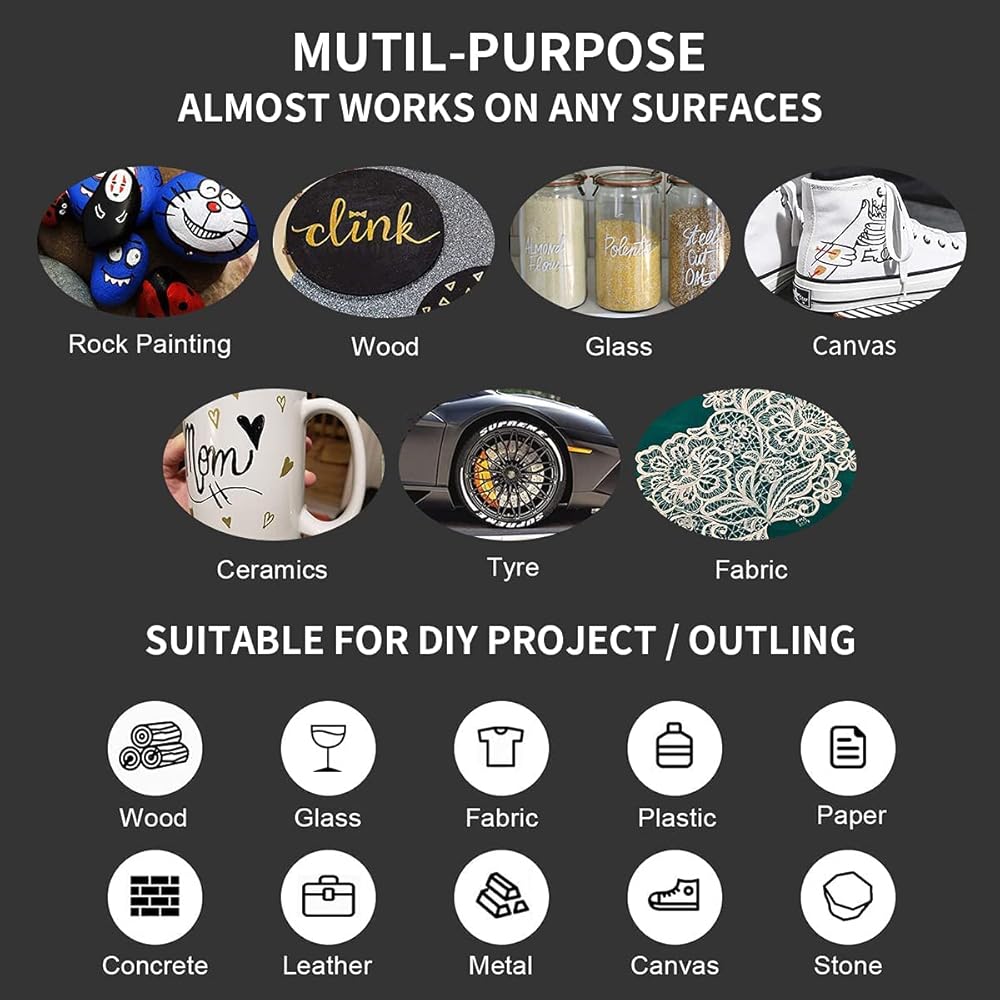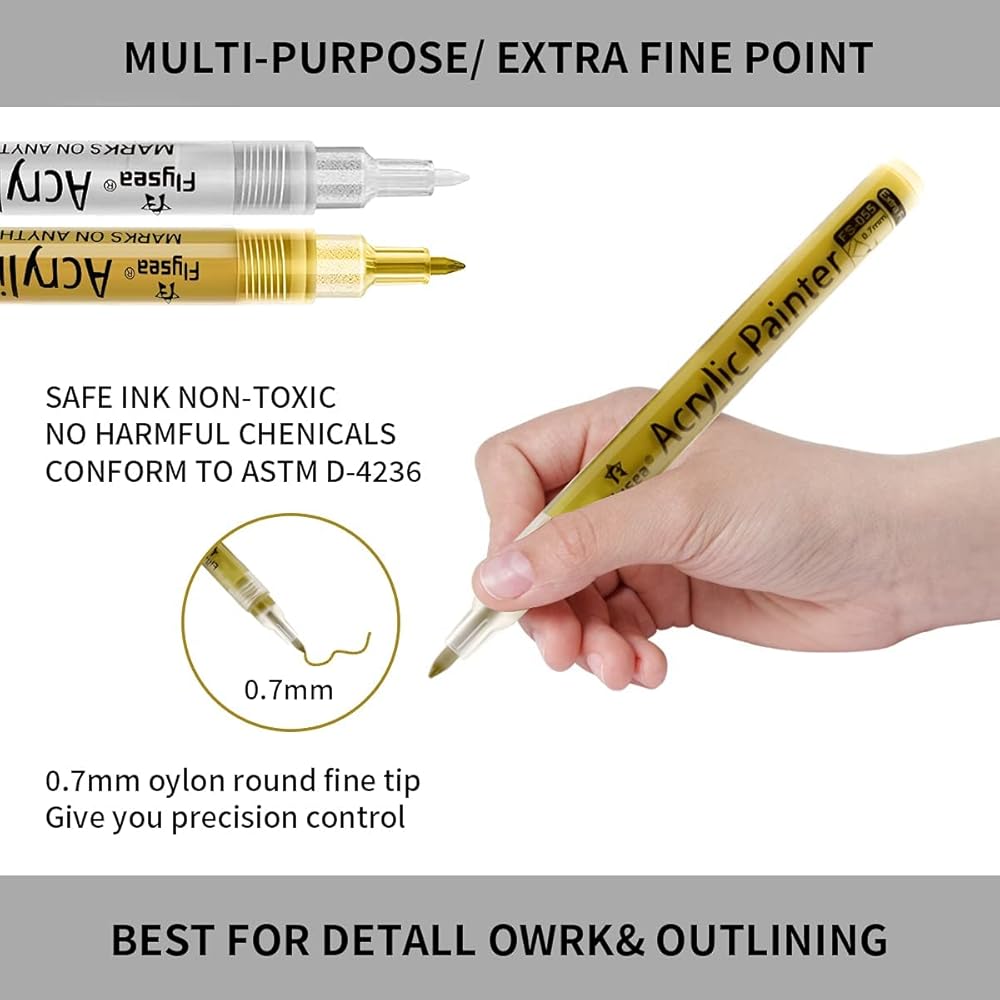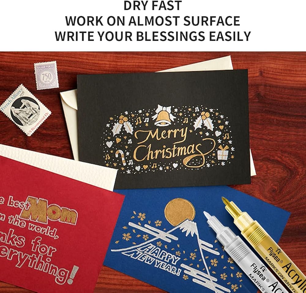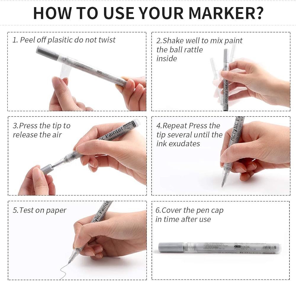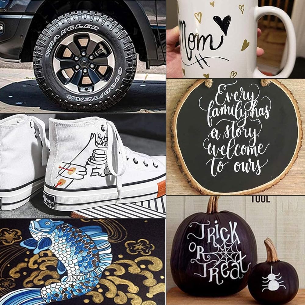 توفير آمن ودائم: قلم تحديد طلاء أكريليك بقوة تغطية طويلة، مقاوم للماء، مقاوم للبهتان، لا ينزف، لون يدوم طويلاً، حبر آمن، لا تسرب، لا مواد كيميائية ضارة، غير سام، لا رائحة، لا رائحة قوية.