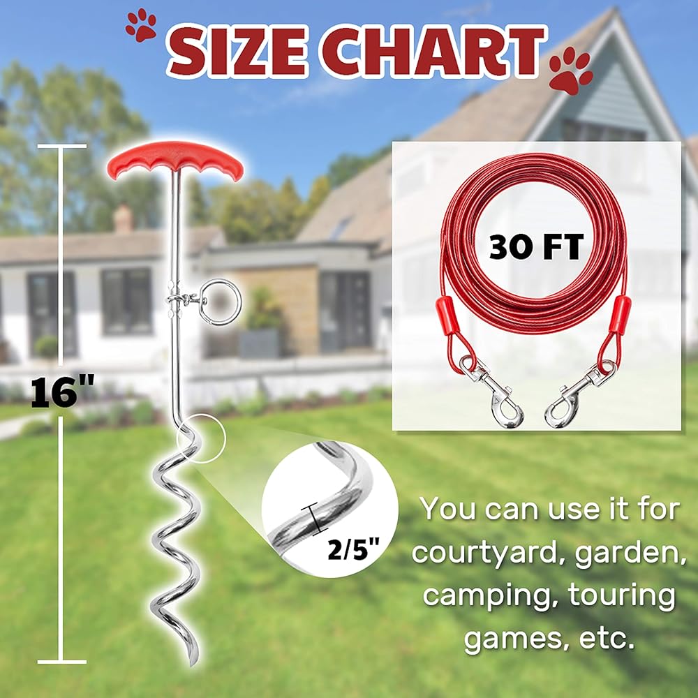 مصمم خصيصًا لأنشطة الحيوانات الأليفة لتجنب ضياع الحيوانات الأليفة بسبب الإثارة أثناء الركض. أوتاد للكلاب مقاس 16 انش مع كيبل ربط بطول 30 قدم، يمكنك استخدامها في الفناء والحديقة والتخييم وألعاب الجولات وما إلى ذلك. دع كلبك يتخلص من الملل، ويمكنه أيضًا تحسين الاتصال بينك وبين حيوانك الأليف