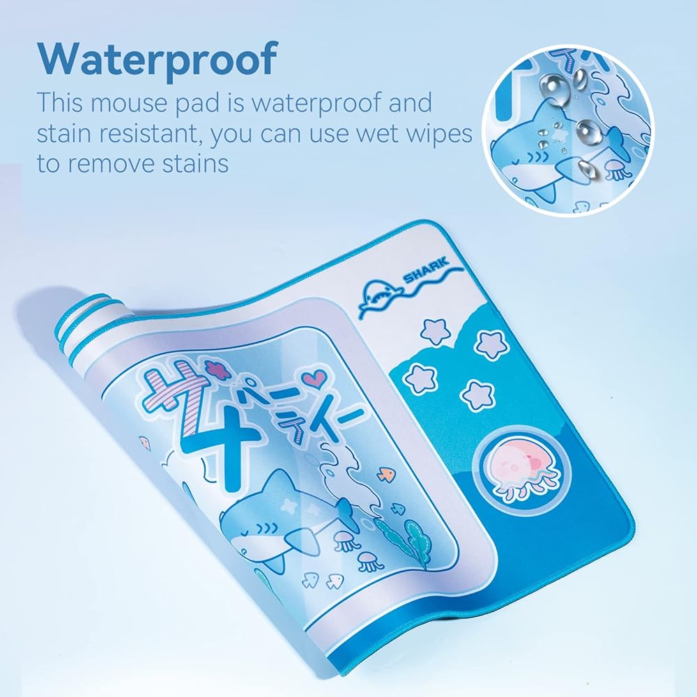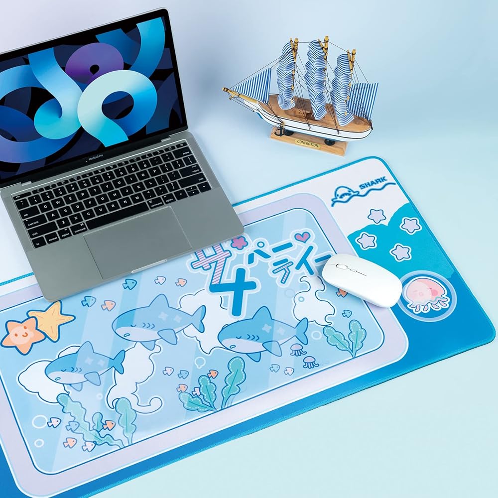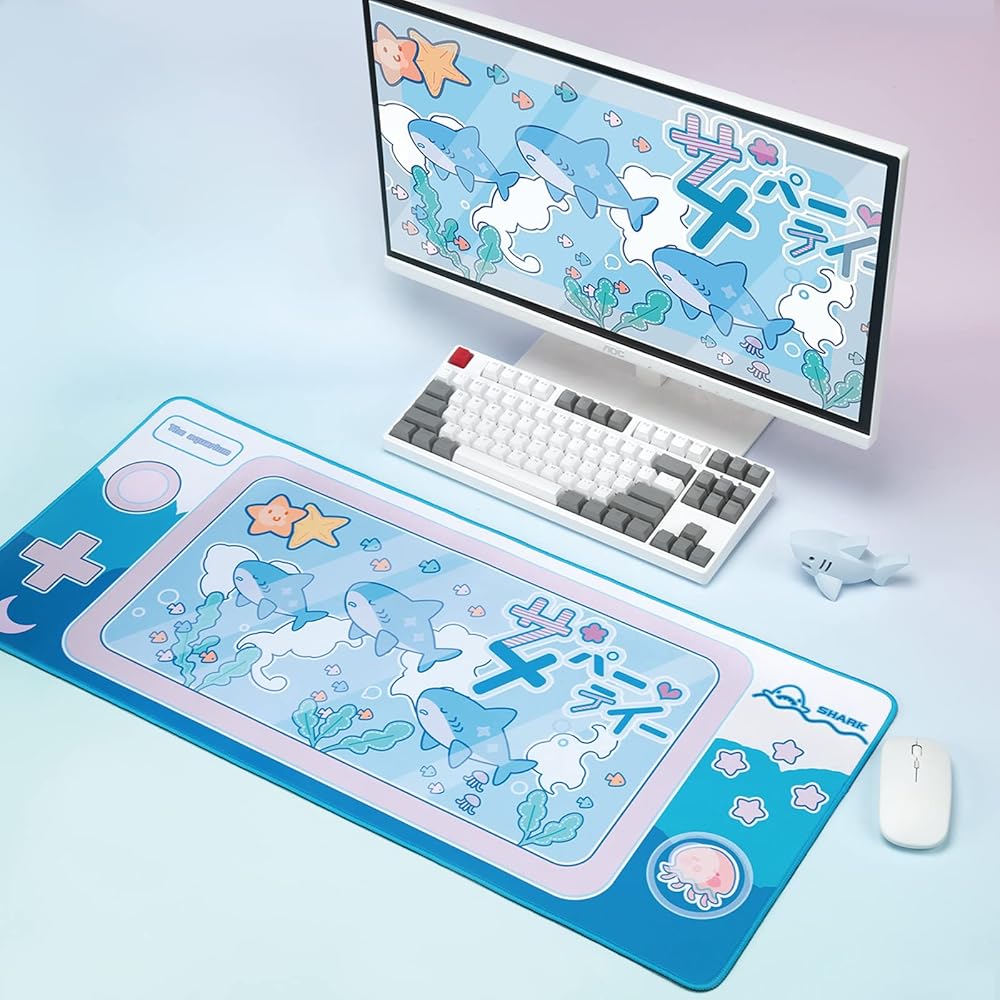 لوحة ماوس GeekShare Cute Shark Party - قاعدة مكتب مطاطية كبيرة غير قابلة للانزلاق للوحة المفاتيح والماوس، مثالية للألعاب أو الكتابة أو العمل في المكتب المنزلي