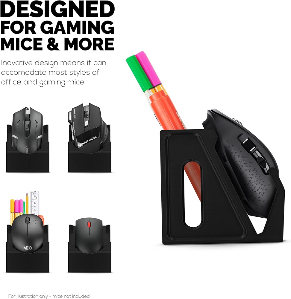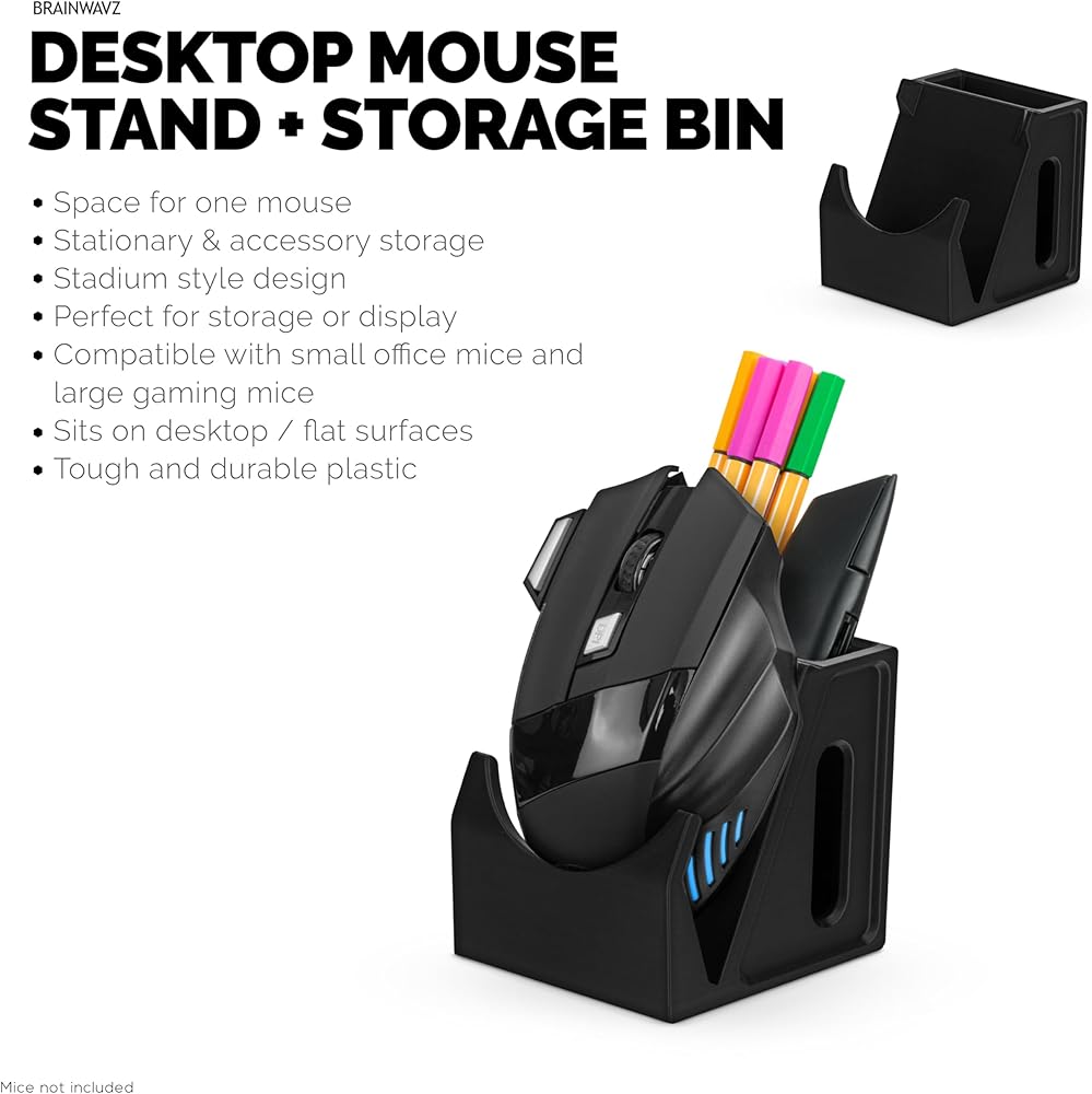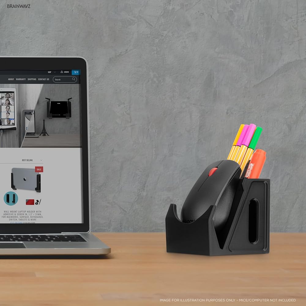 حامل ماوس للكمبيوتر المكتبي من BRAINWAVZ مع حامل أقلام ثابت، لفئران الألعاب والمكاتب من Logitech وRazer وCorsair والمزيد - تنظيم المساحة وإبقائها خالية من الفوضى! (DM02)