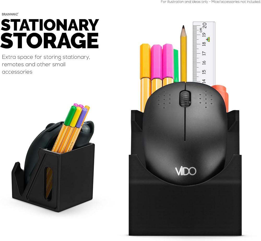ماوس سطح المكتب وحامل ثابت: منظم عرض سطح المكتب Brainwavz لفئران الكمبيوتر أو تخزين الألعاب أو فئران المكتب، بالإضافة إلى فتحة خلفية سهلة الاستخدام للأدوات الثابتة وغيرها من الأشياء الصغيرة. يُظهر تصميم الاستاد معداتك بطريقة مدمجة وأنيقة، مما يحافظ على سطح المكتب الخاص بك منظمًا والفأرة الخاصة بك آمنة ومأمونة.