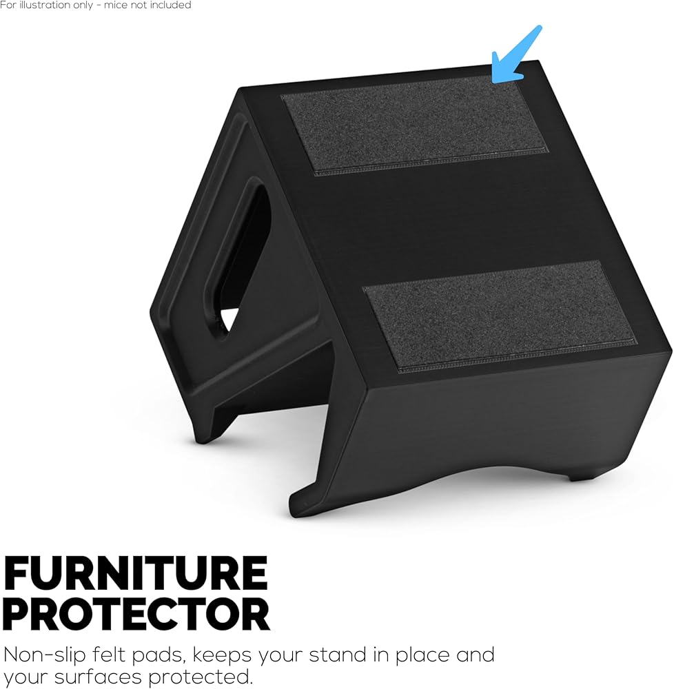 حماية سطح المكتب: تساعد وسادات اللباد المتضمنة على الحفاظ على الحامل في مكانه، فضلاً عن حماية الأسطح من التلف.