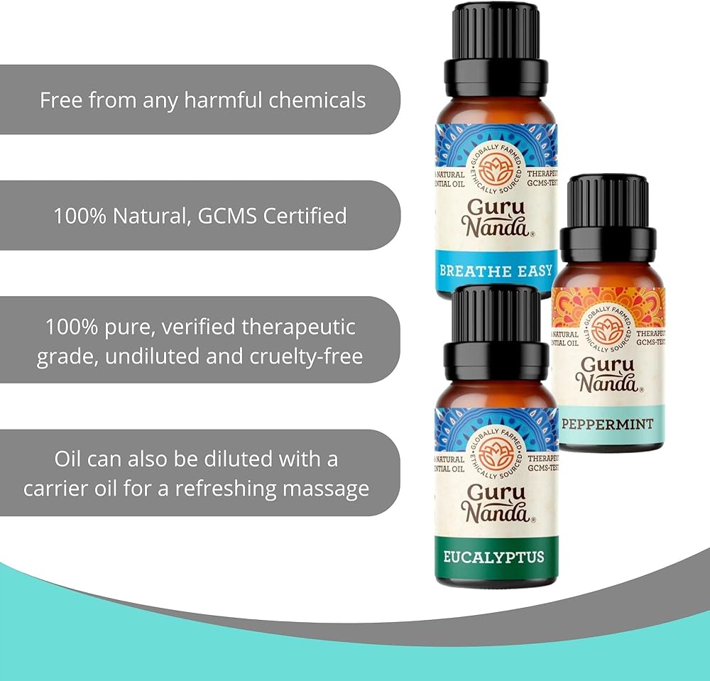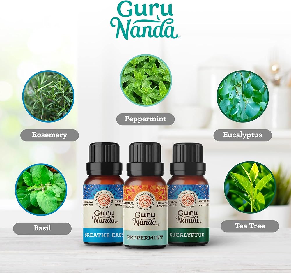مجموعة جوروناندا من أفضل 6 زيوت أساسية: ارفع مزاجك مع 6 (مجموعة متنوعة من الروائح) من الزيوت العطرية الأكثر شعبية لكل منها 10 مل - اللافندر والنعناع والأوكالبتوس وعشب الليمون والجريب فروت واليلانج يلانج معبأة في زجاجات كهرمانية مع أغطية مانعة للتسرب.