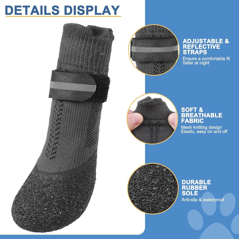 تصميم مسامي: تتميز جوارب الحيوانات الأليفة لدينا بتصميم شبكي من أجل نفاذية هواء فائقة ومواد ناعمة ومريحة لمنع الانزعاج في أي موسم.