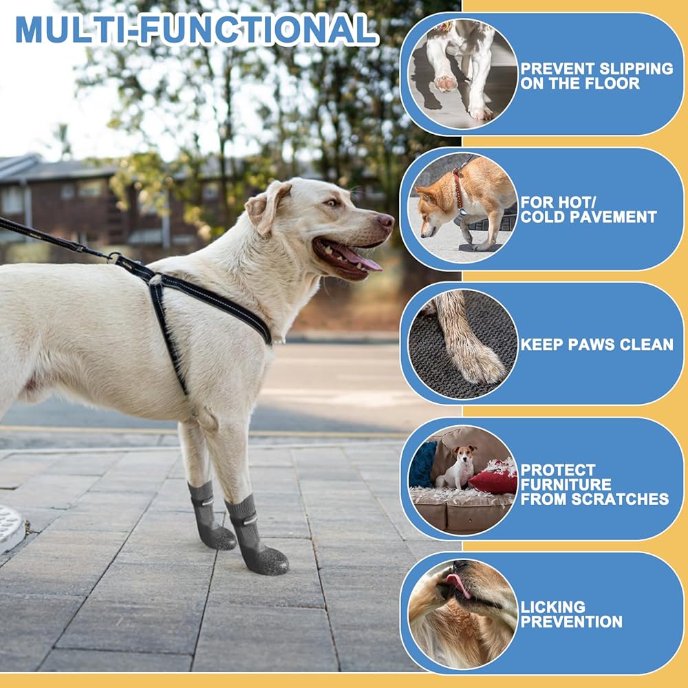متعددة الوظائف: تحمي جواربنا أقدام حيوانك الأليف من الإصابات، وتبقيها دافئة، وتمنعها من الاتساخ، ومقاومة للماء، ويمكن أيضًا أن تمنع لعق الجروح.