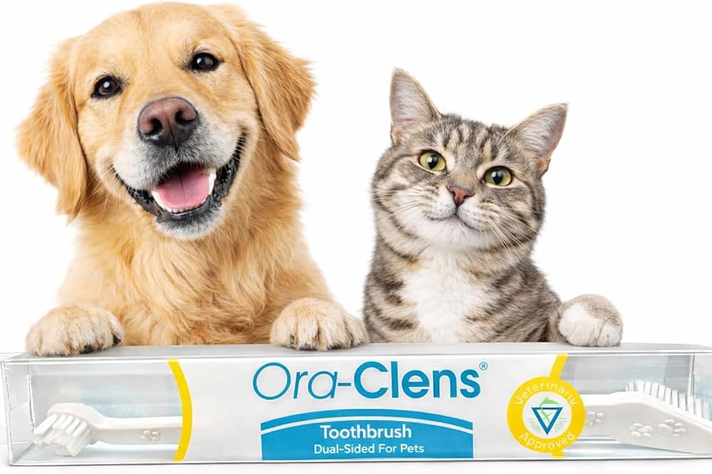 فرشاة أسنان مزدوجة الأطراف - تصميم مريح بزاوية، رقبة طويلة مرنة، خفيفة الوزن، مريحة، تساعد على التحكم في الجير والبلاك ورائحة الفم الكريهة للكلاب والقطط.