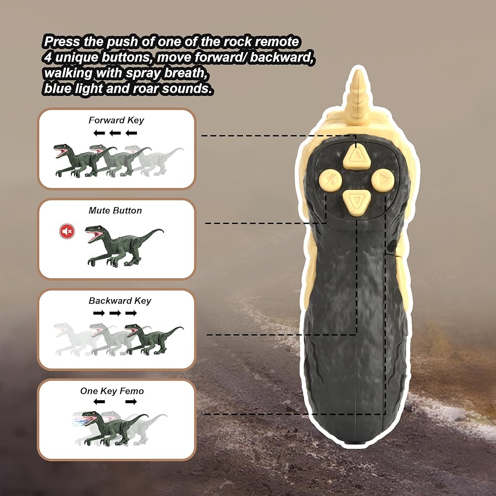 • متعة الديناصورات الديناميكية: لعبة فيلوسيرابتور متعددة الوظائف الخاصة بنا مليئة بالإثارة! اسحب الزناد الموجود على جهاز التحكم عن بعد لمشاهدته وهو يطارد الضوء الأحمر بحركات نابضة بالحياة. بالإضافة إلى ذلك، فهو ينزلق ويتتبع مصادر الضوء ويرش رذاذ الماء بتأثير الضوء البارد. استعد لمغامرة الديناصورات النهائية!