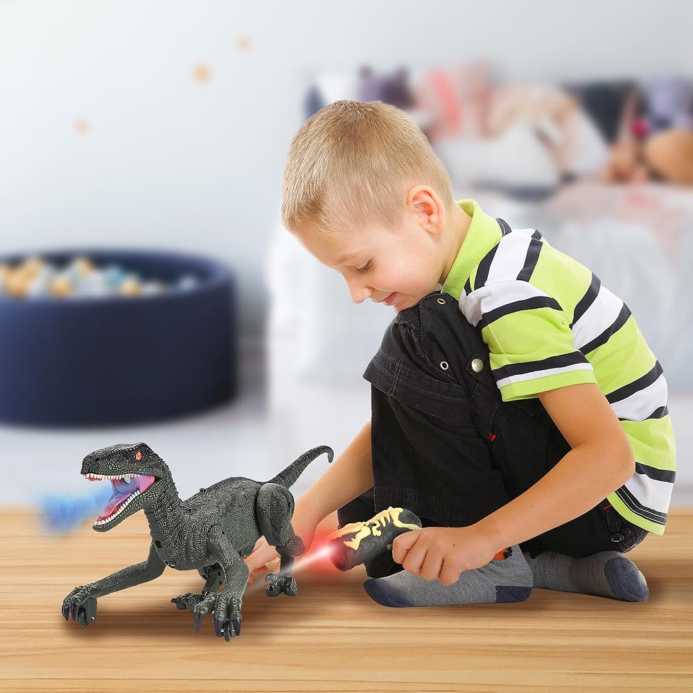 ديناصور للتحكم عن بعد من PowerTRC للأولاد من سن 4 إلى 7 سنوات، ألعاب ديناصور RC للأطفال من سن 3 إلى 5 سنوات مع أرجل واقعية ودفق رذاذ، ألعاب ديناصور مطاردة بإضاءة LED للأطفال من سن 8 إلى 12 عامًا هدية عيد ميلاد باللون الأخضر
