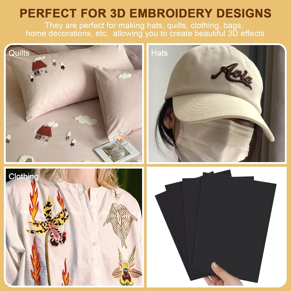 • PERFECT FOR 3D EMBROIDERY DESIGNS: The 3 mm thick foam is perfect for creating eye-catching 3D embroidery effects. It can effectively enhance the layering of stitched designs and add a significant three-dimensional effect to your work. Experience the vividness and fullness brought by our foam, making your creations more visually impactful.