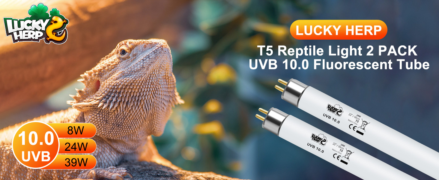 LUCKY HERP 2 Pack T5 UVB 10.0 ضوء الزواحف 8W، أنبوب مصباح الفلورسنت UVA UVB، لمبة إضاءة UVB للسلاحف والحرباء والسلاحف والسحلية