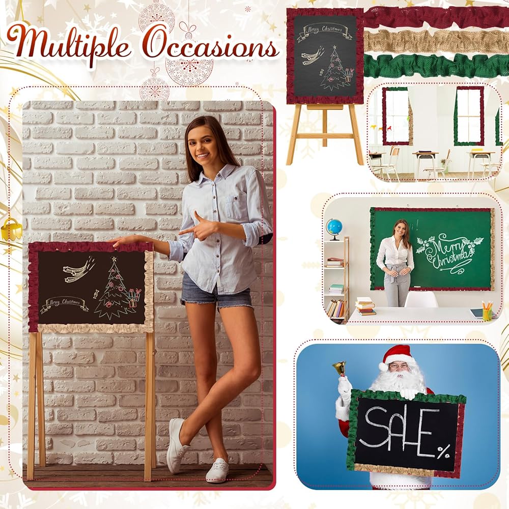 Create the nice festive ambiance with our green border, burlap border. It comes in handy for Christmas decorations and winter holiday themes, turning your regular bulletin board into an eye catching festive decoration. This can help you spread the joy of the holiday in your neighborhood, home, or office.