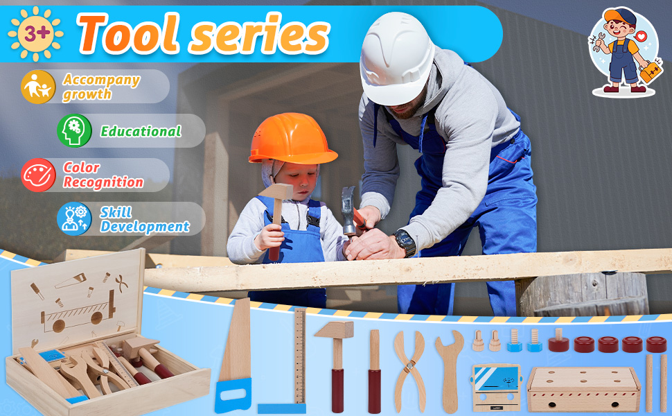 كونه مساعد جيد. يحب الأطفال الصغار تقليد ما يفعله الكبار، وستوفر مجموعة الأدوات الخشبية لدينا فرصة للأطفال "لإصلاح" المنازل مثل الأبواب والألعاب مع الأب. إن تشغيل مجموعة أدوات الأطفال الخشبية هذه بسيط للغاية ويتيح لأطفالك استخدام صندوق الأدوات الخاص بهم للمشاركة في مشاريع DIY العائلية. سوف يعتقدون أنني مساعد جيد لأبي، مما سيزيد من الحب بين الأب والأطفال.