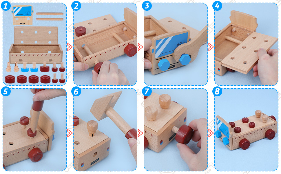 مهمتنا هي صنع ألعاب أدوات صديقة للأطفال. يشعر الأطفال الصغار دائمًا بالفضول بشأن صندوق أدوات الأب، لكن مجموعة أدوات الأب الموجودة بالداخل تشكل خطورة بالنسبة لهم للعب بها لأن الأطفال أصغر من أن يتعاملوا مع الأدوات الحقيقية. صندوق الأدوات الخشبي الخاص بنا مصنوع من الخشب الفاخر بحواف غير حادة. يتعلم البناؤون الصغار كيفية استخدام مجموعة الأدوات لإصلاح الأشياء وإنشاءها مثل أبي! تماما مثل هذه الشاحنة الخشبية.