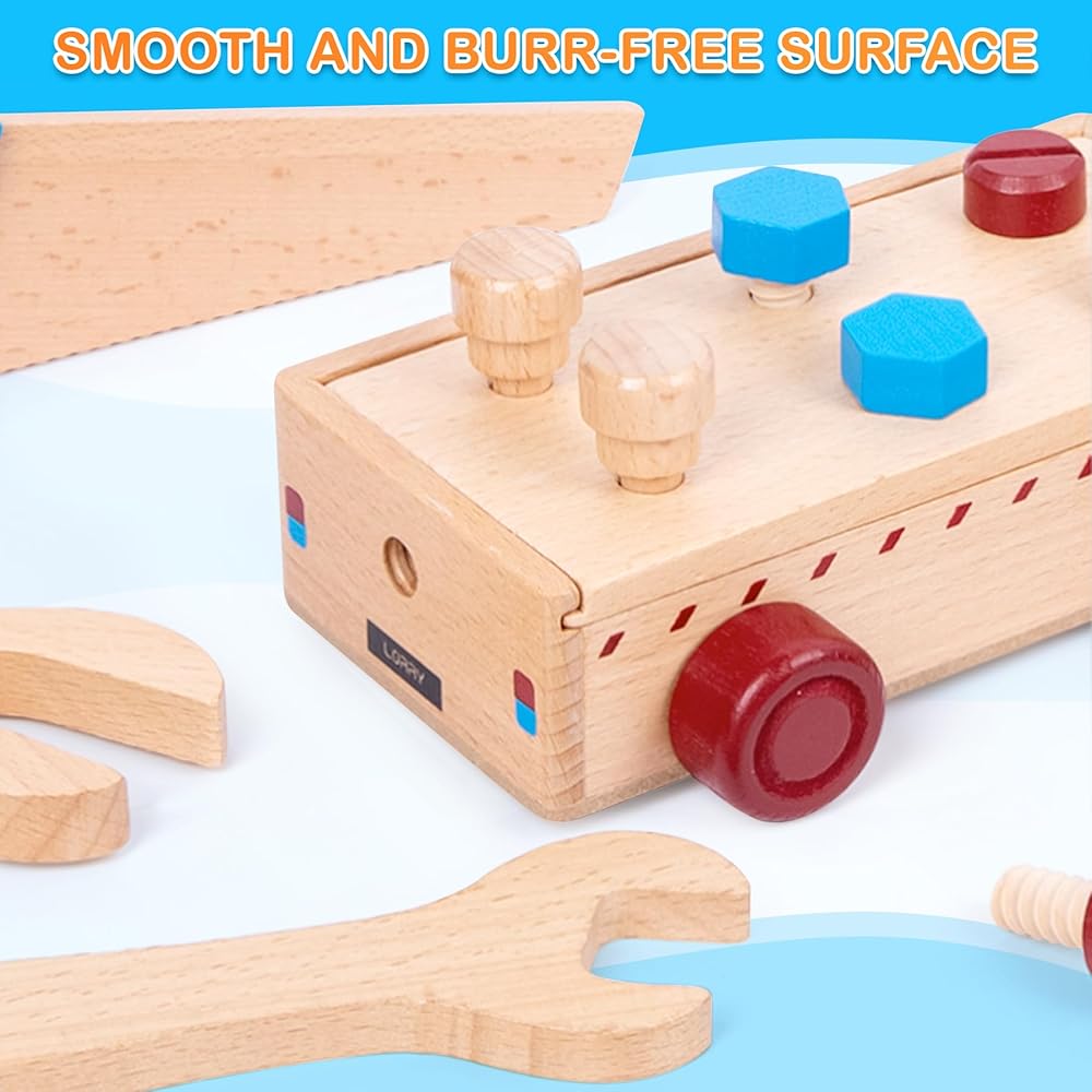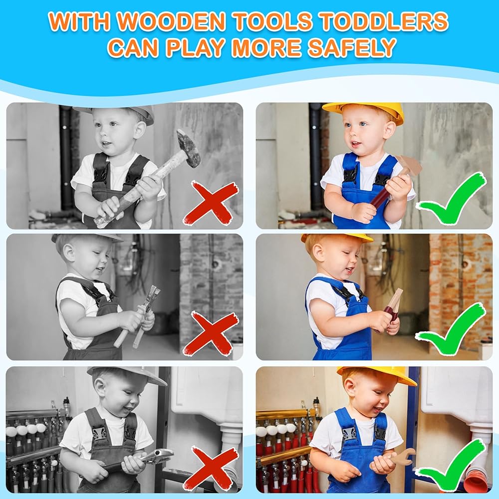 ألعاب مونتيسوري رائعة للأطفال بعمر سنتين وألعاب جذعية ممتعة للأطفال الصغار من الأولاد والبنات بعمر 3 سنوات. مع مجموعة الأدوات الخشبية لدينا، يمكن للأطفال الصغار أن يلعبوا دور النجار. أدوات خشبية محاكاة مختلفة تعزز الشعور بالحقيقة. تشجع خيال الأطفال وتحسن مهاراتهم الحركية الدقيقة والتنسيق بين اليد والعين ومهارات حل المشكلات. يمكن لأطفالك الصغار الحصول على تطور أفضل أثناء اللعب.