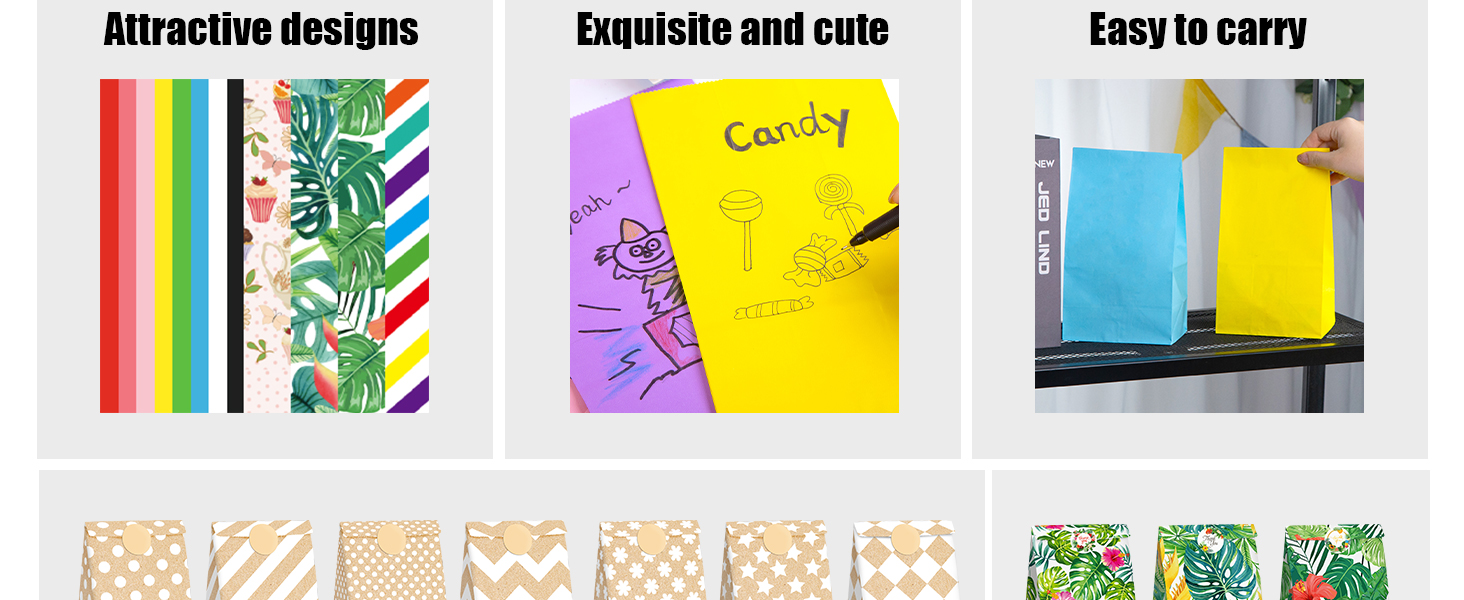تصميم مميز - تم تصميم حقائب الهدايا هذه مع وضع الحفلات في الاعتبار، وتتميز بطبعات معقدة تضيف لمسة حيوية إلى تجمعك، وتجذب انتباه جميع الحاضرين.