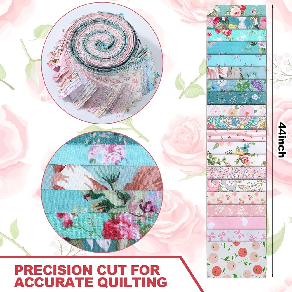 Each roll of fabric strips: 44 inch/ 112 cm in length, 2.5 inch/ 6.5 cm in width