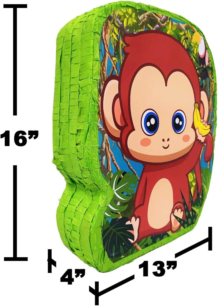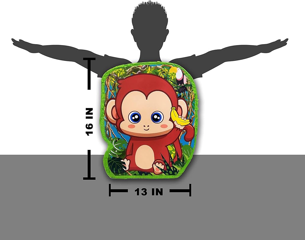 This beautiful monkey p-ñata measures 16 inches high by 13 inches wide by 4 inches deep
