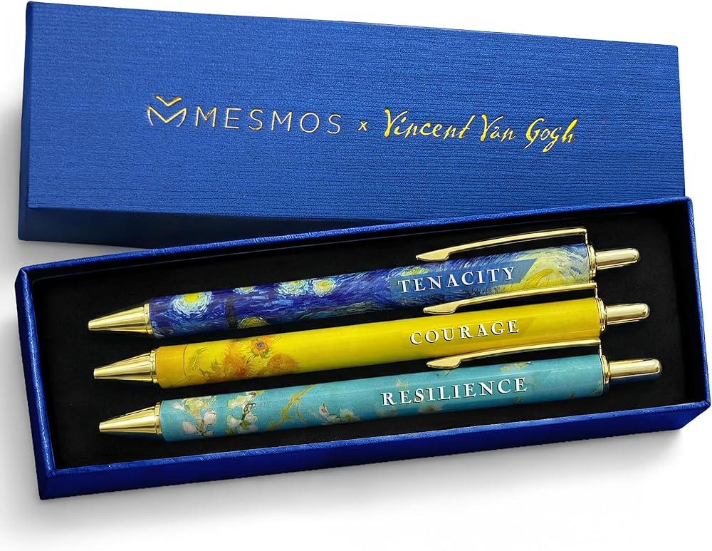 • سلسلة مجموعة أقلام فان جوخ - جزء من سلسلة ميسموس الكلاسيكية، التي تتميز بليلة مرصعة بالنجوم وعباد الشمس وزهر اللوز. مزيج مثالي من الفن والعملية في مجموعة الأقلام المتميزة هذه. هدايا مثالية للنساء أو هدية لأفضل الأصدقاء النساء.