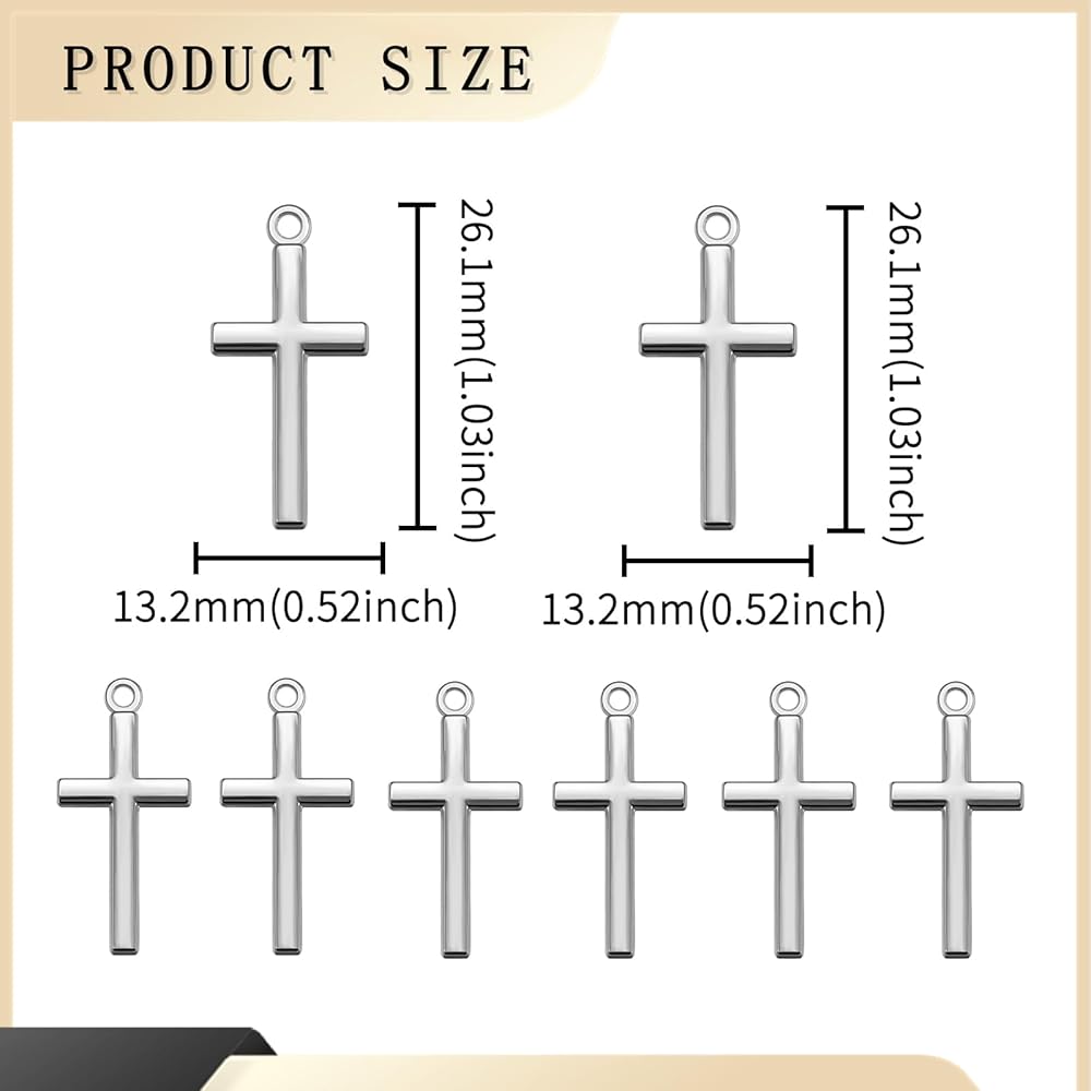 • Classic Design:Made of high quality zinc alloy, these cross pendants are highly crafted and durable, with burrless edges and a highly polished surface,smooth and full. The cross presents a classic simple and stylish aesthetic. This 1.1-inch long cross is suitable for making jewelry such as men's necklaces, bracelet pocket crosses, etc. It is also suitable for making women's earrings, Mexican bracelets, etcSufficient quantity, perfect shape and size to meet the needs of your many DIY projects.