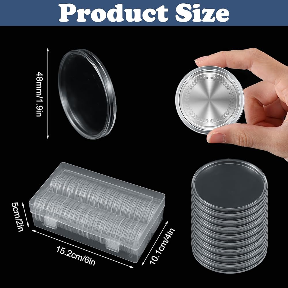 • You Will Get: You will get 50 pieces of 48 mm coin capsules and a large storage box, a total of 51; The quantity is enough for your use needs, you can share with others; Note: Silver coins are not included in the package