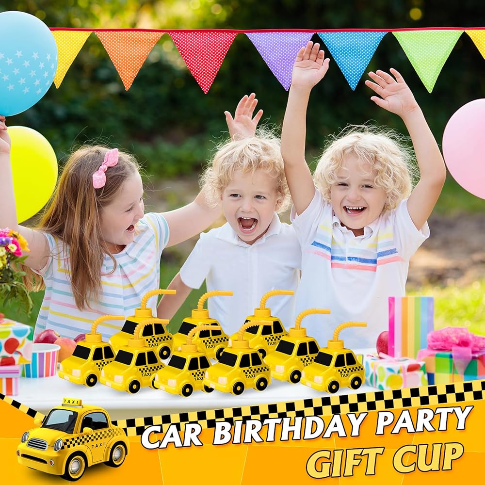 The car party favor cups for the car themed party are designed in the shape of a taxi car, which is fun, arousing imagination, and improving children's creative thinking and positive cognitive learning.