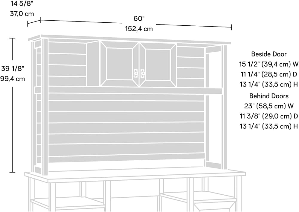 Assembled dimensions: L: 60.00" x W: 14.57" x H: 39.13"
