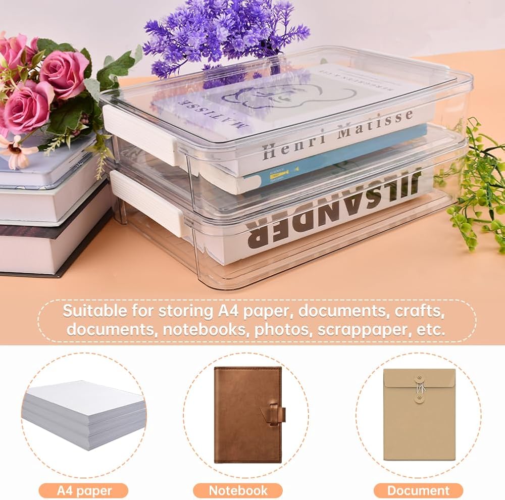 【WIDE APPPLICATION】(L x W x H)about 34.5 x 23.5 x 7cm/13.58 x 9.25 x 2.76inch,suitable for holding standard A4 paper, files, documents, notebooks, crafts, photos, scrapbooking paper, etc, can be stored at home, office, or school.
