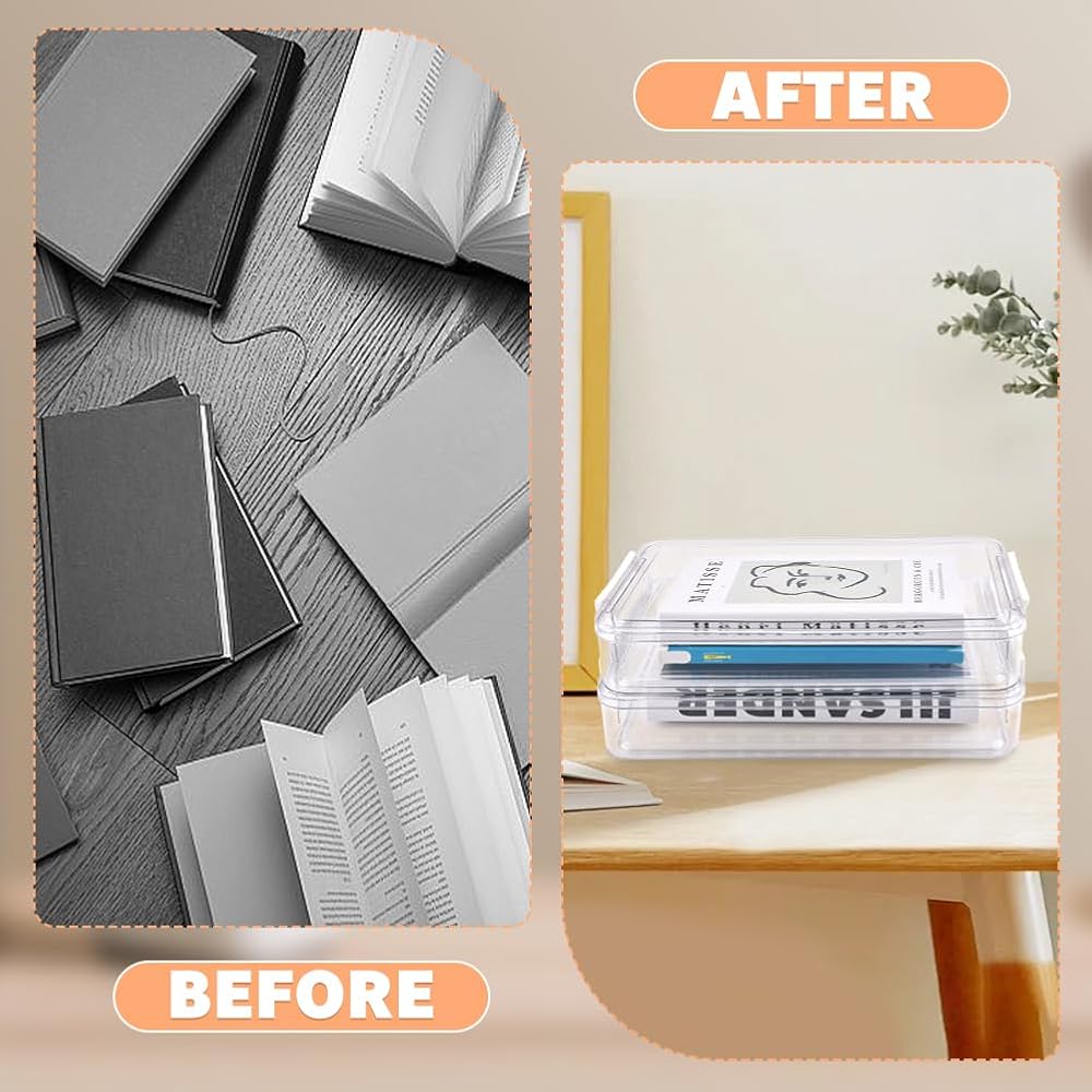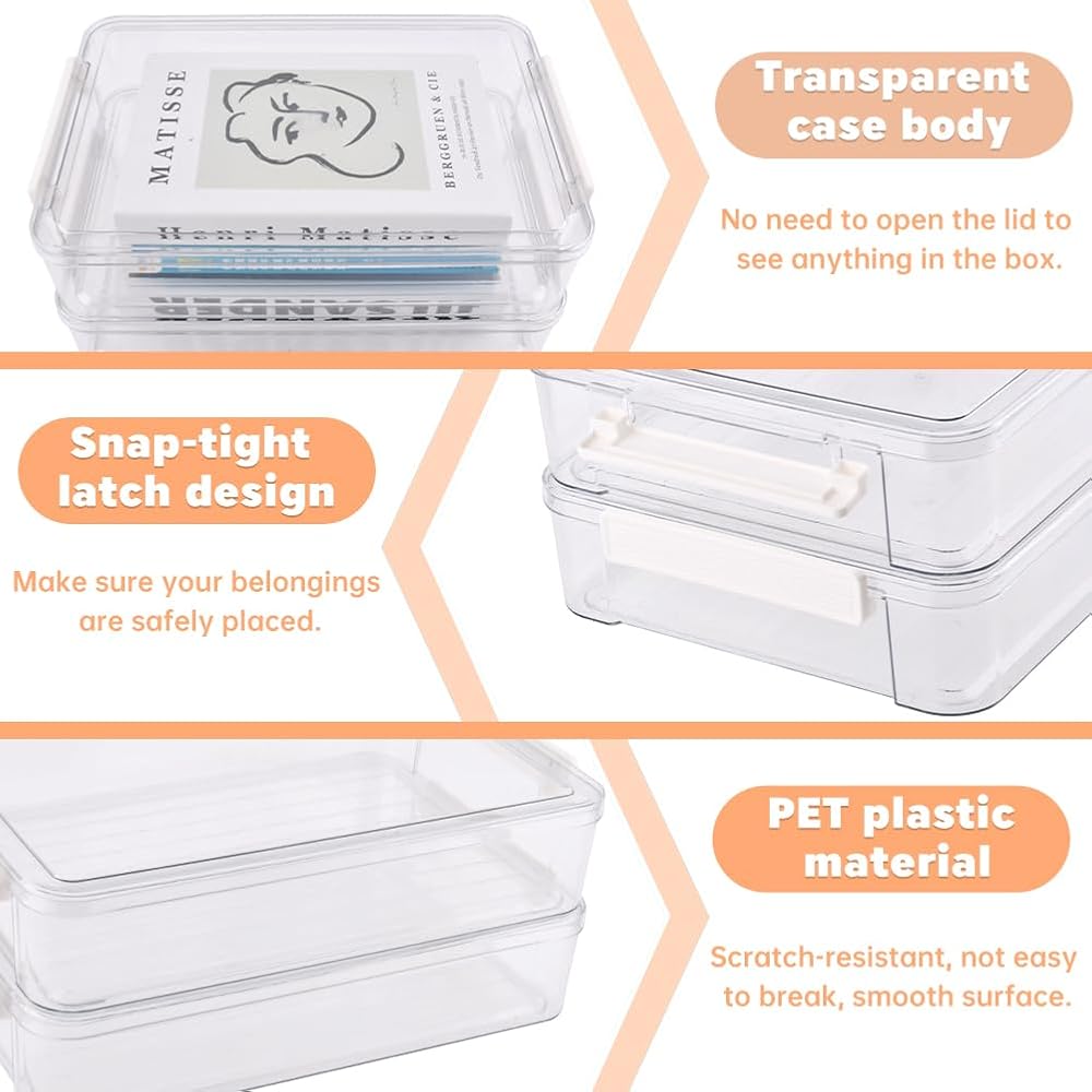 صندوق ملفات مكون من قطعتين، مقاس 13.58 × 9.25 بوصة، صناديق تخزين مستندات بلاستيكية شفافة، حافظة مشروع مع أغطية، صناديق تخزين قابلة للتكديس، حاويات تنظيم الورق لملفات A4، مستندات الصور، سجل القصاصات، اللوازم الفنية
