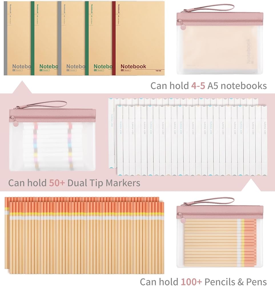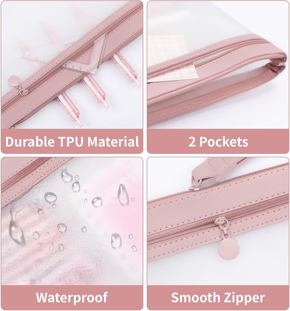 • 【واضحة وعملية】تسمح لك حقيبة القلم الرصاص الشفافة برؤية أدواتك المكتبية واللوازم الأخرى بسهولة، مما يجعل من السهل تحديد موقع العناصر وتوفير الوقت. يعمل الإغلاق الناعم والمتين بسحاب على تأمين العناصر في مكانها، ويمنع الانسكابات أو الضياع، مع السماح بالوصول السهل.