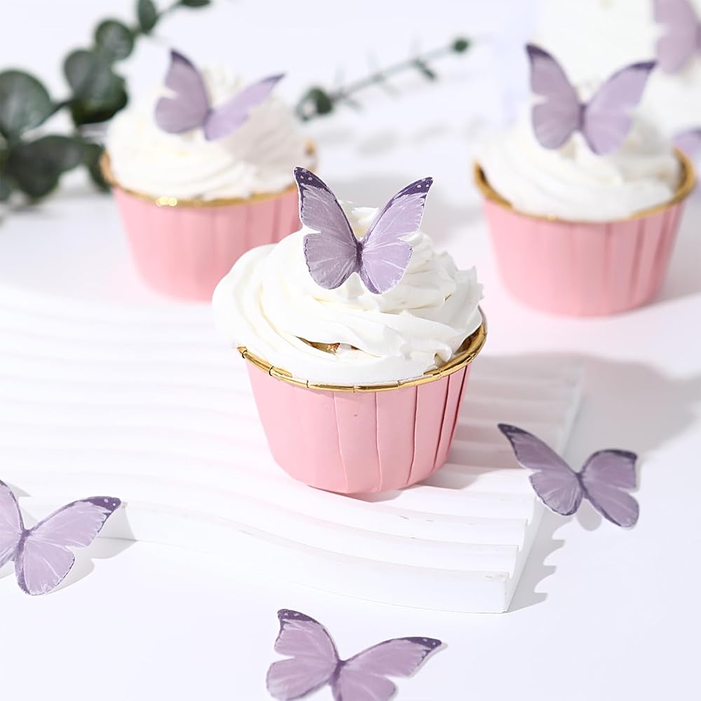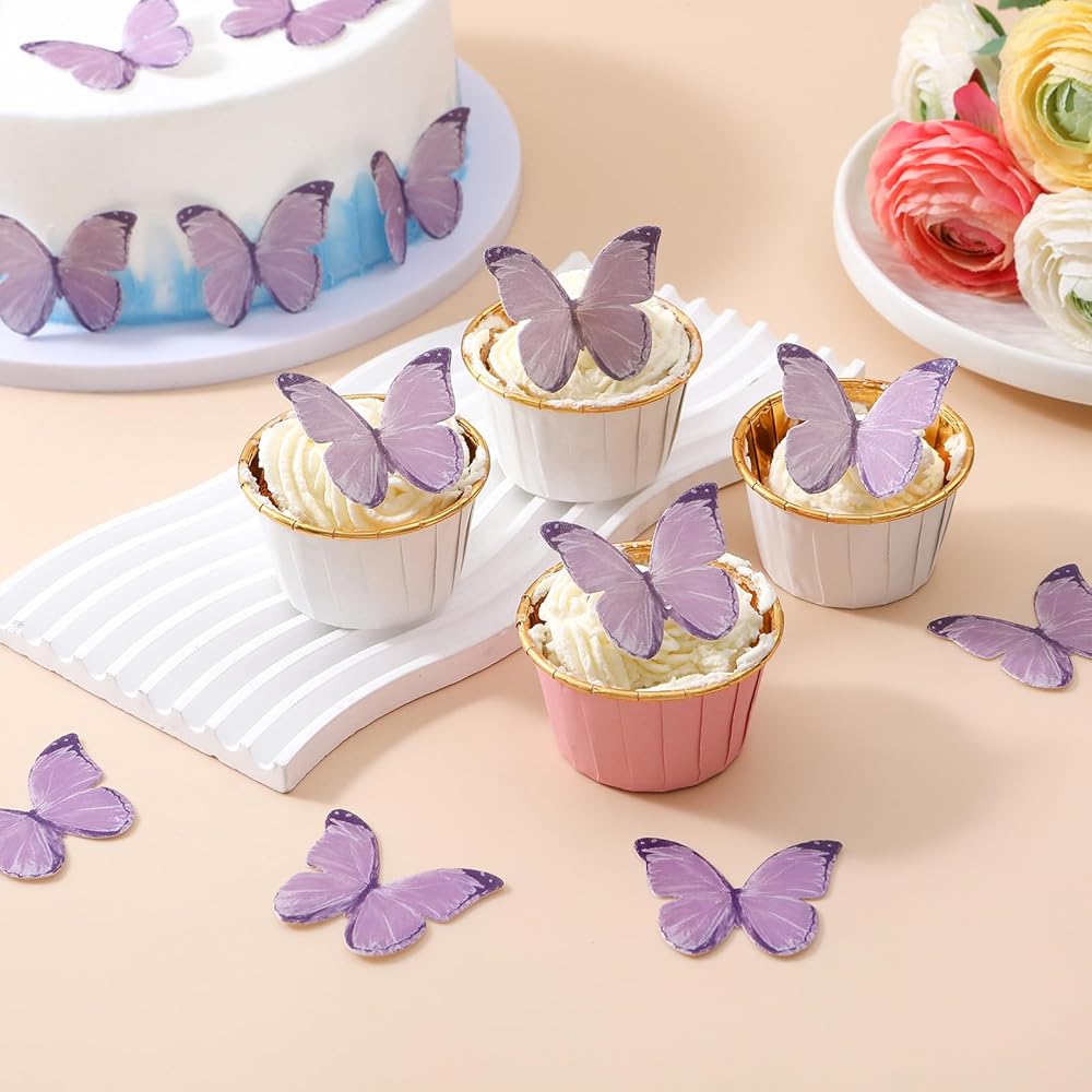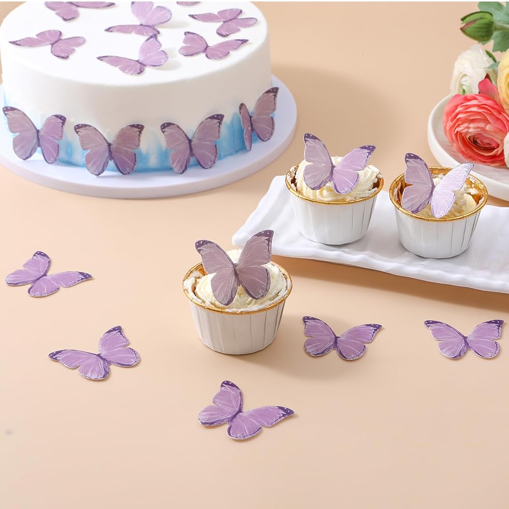 【مادة آمنة】: أغطية الكب كيك على شكل فراشة صالحة للأكل مصنوعة من الأرز اللزج! إنها صالحة للأكل تمامًا ولكنها ليست لذيذة. فهي لا طعم لها تقريبًا، وليست حلوة على الإطلاق (خالية من السكر)، ومناسبة للنباتيين والنباتيين