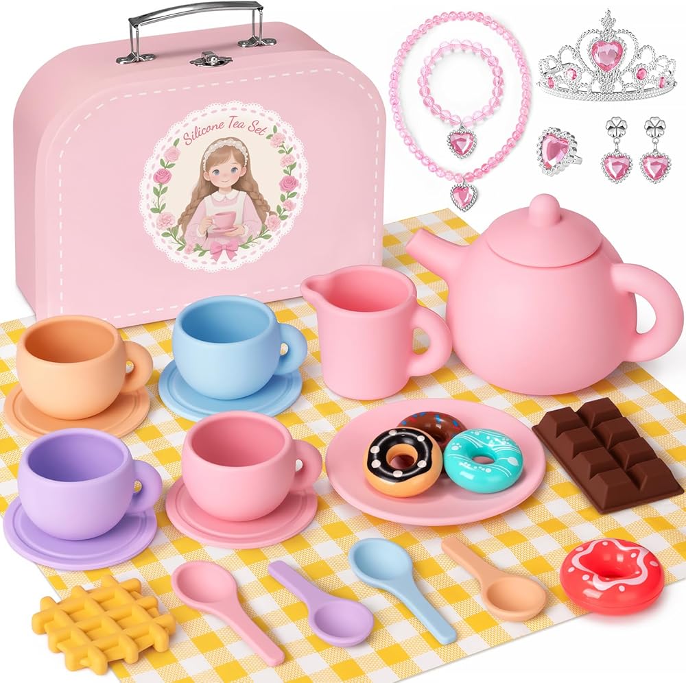 【LEARNING THROUGH PLAY】Toddler girls love to play pretend - our tea party set is designed for littler girl pretend play, suitable for 2-4 kids to pretend to role play afternoon tea party together, to develop children's cognitive, social, physical and emotional skills, inspires endless creative thinking, sharing, cooperation