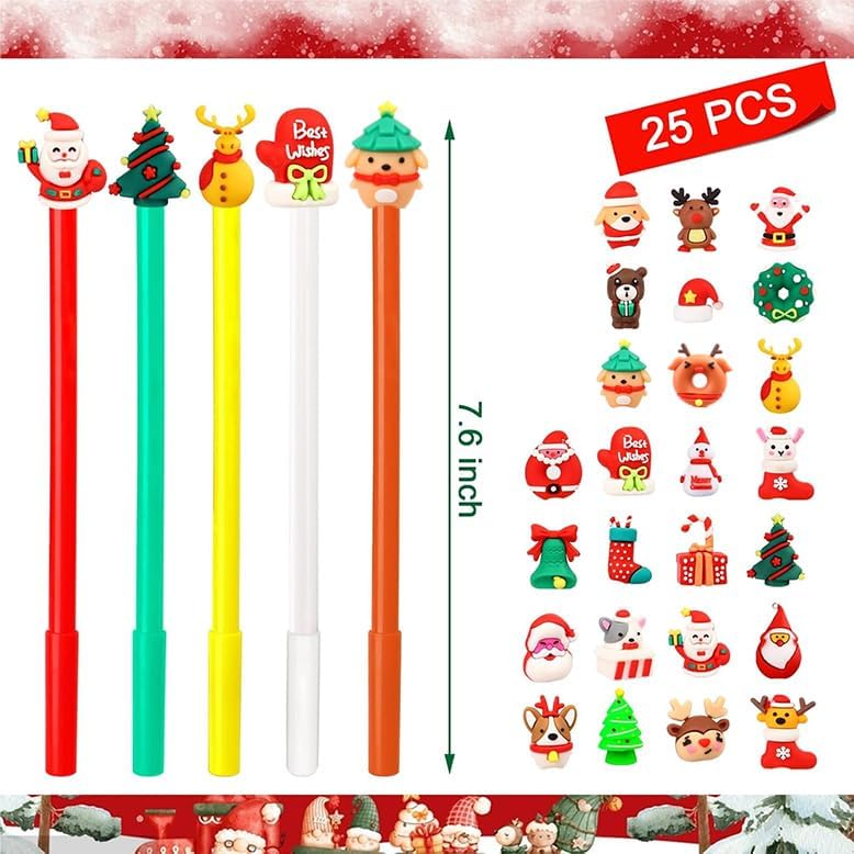 عبوة من 100 قلم من أقلام جل عيد الميلاد من Mluchee، أقلام قصب الحلوى، قلم دونات للحفلات الشتوية، قلم كرتوني لطيف لشجرة عيد الميلاد كلوز رجل الثلج لقضاء العطلات، هدايا مكتب المدرسة، 25 نمطًا